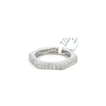A bold, contemporary take on the classic eternity band, this ring features 64 round brilliant-cut natural diamonds totaling 1.42 carats, expertly set in lustrous 18K White gold. The distinctive square-edge silhouette offers a modern architectural feel, while the full circle of diamonds delivers uninterrupted sparkle. Perfect as a wedding band, anniversary ring, or stacking statement piece. HR506