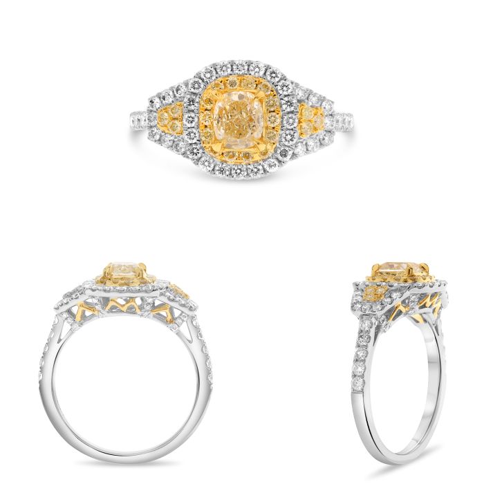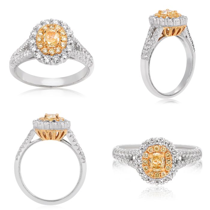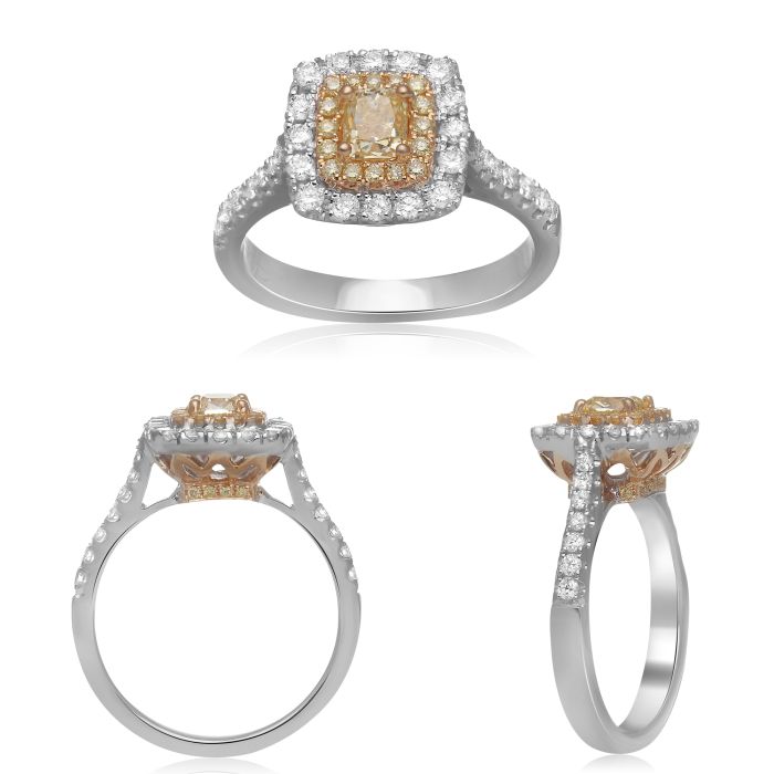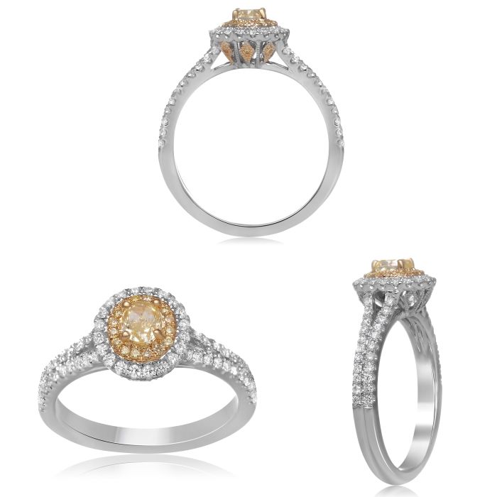 18k White Gold Yellow Diamond Halo Engagement Ring