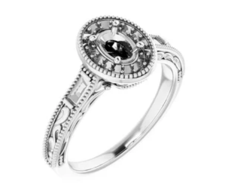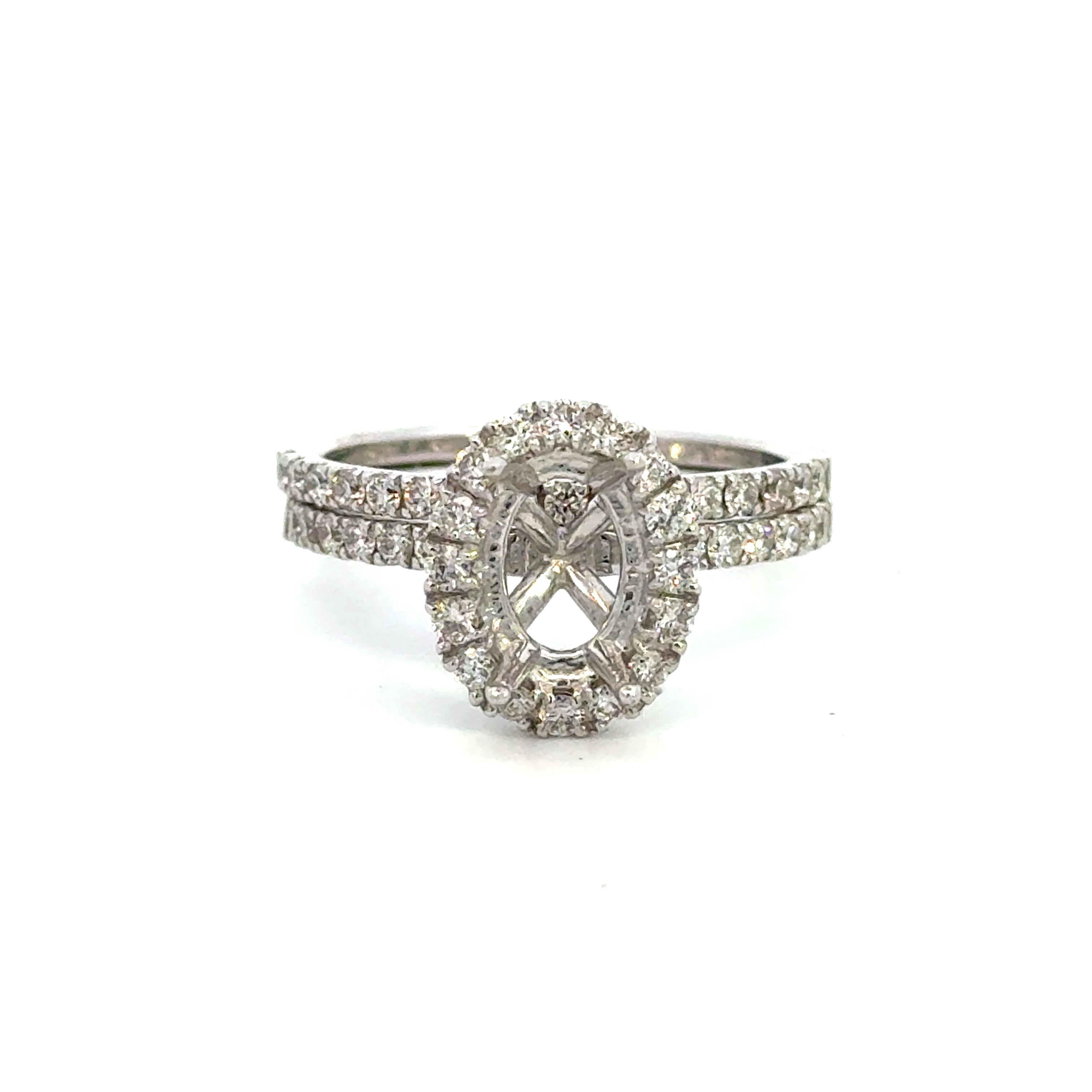 14K White 6x4 mm Oval Engagement Ring Mounting