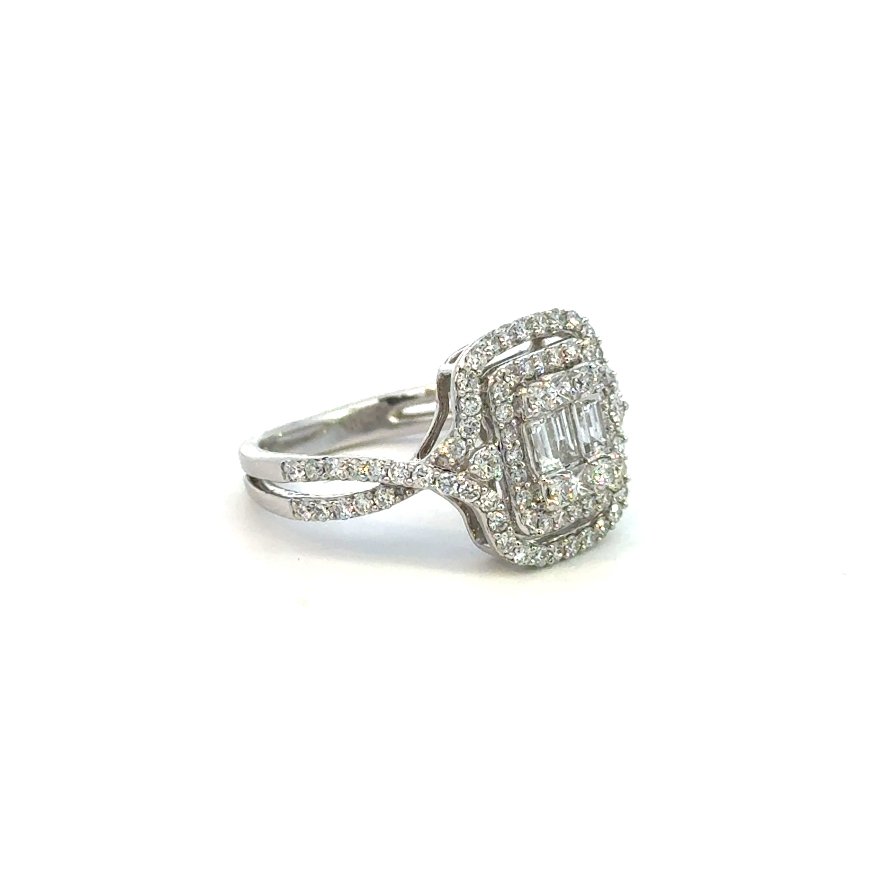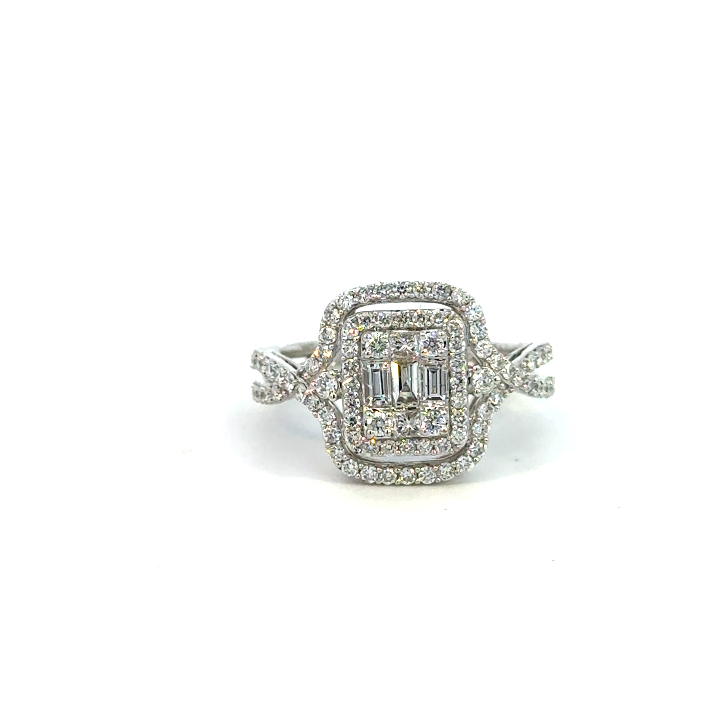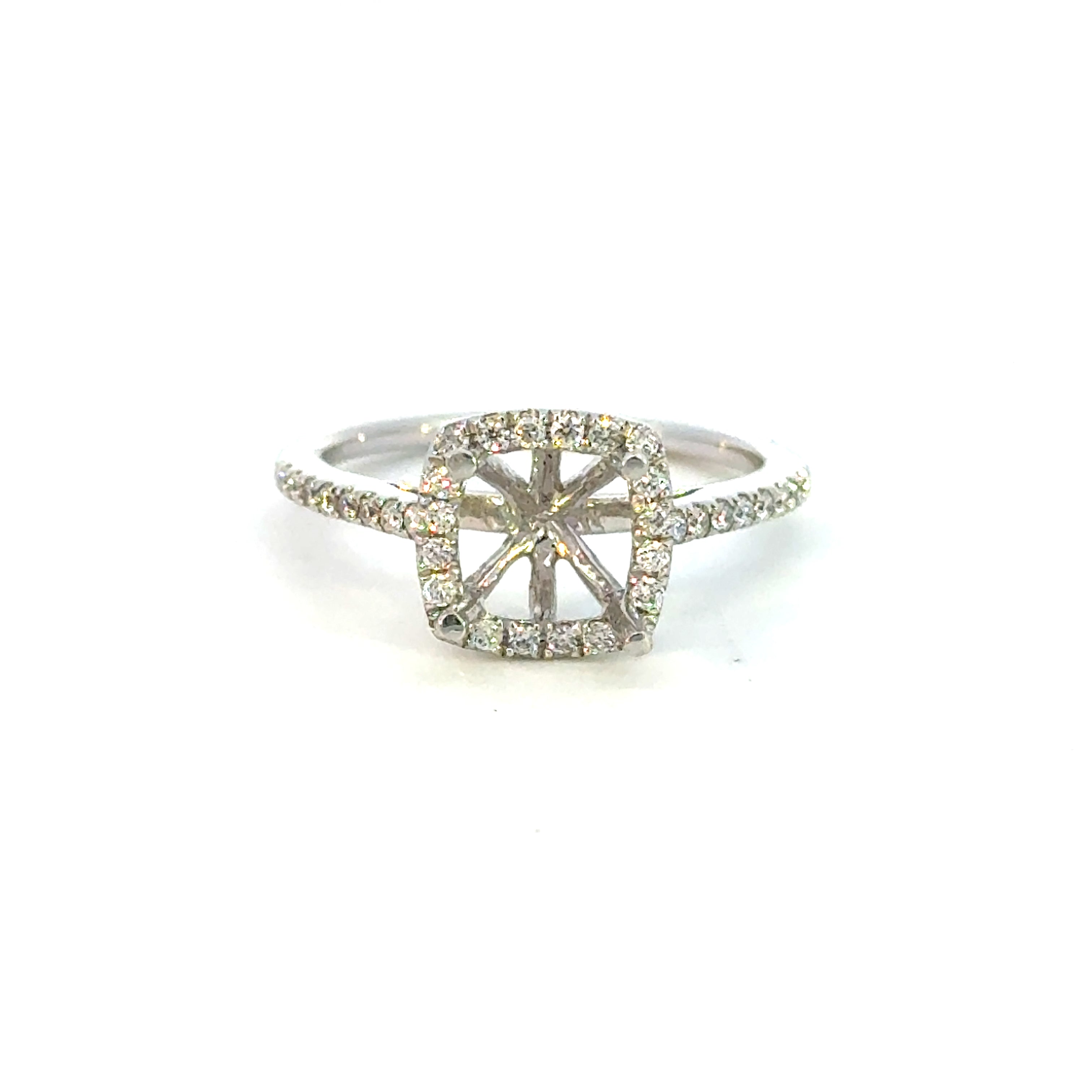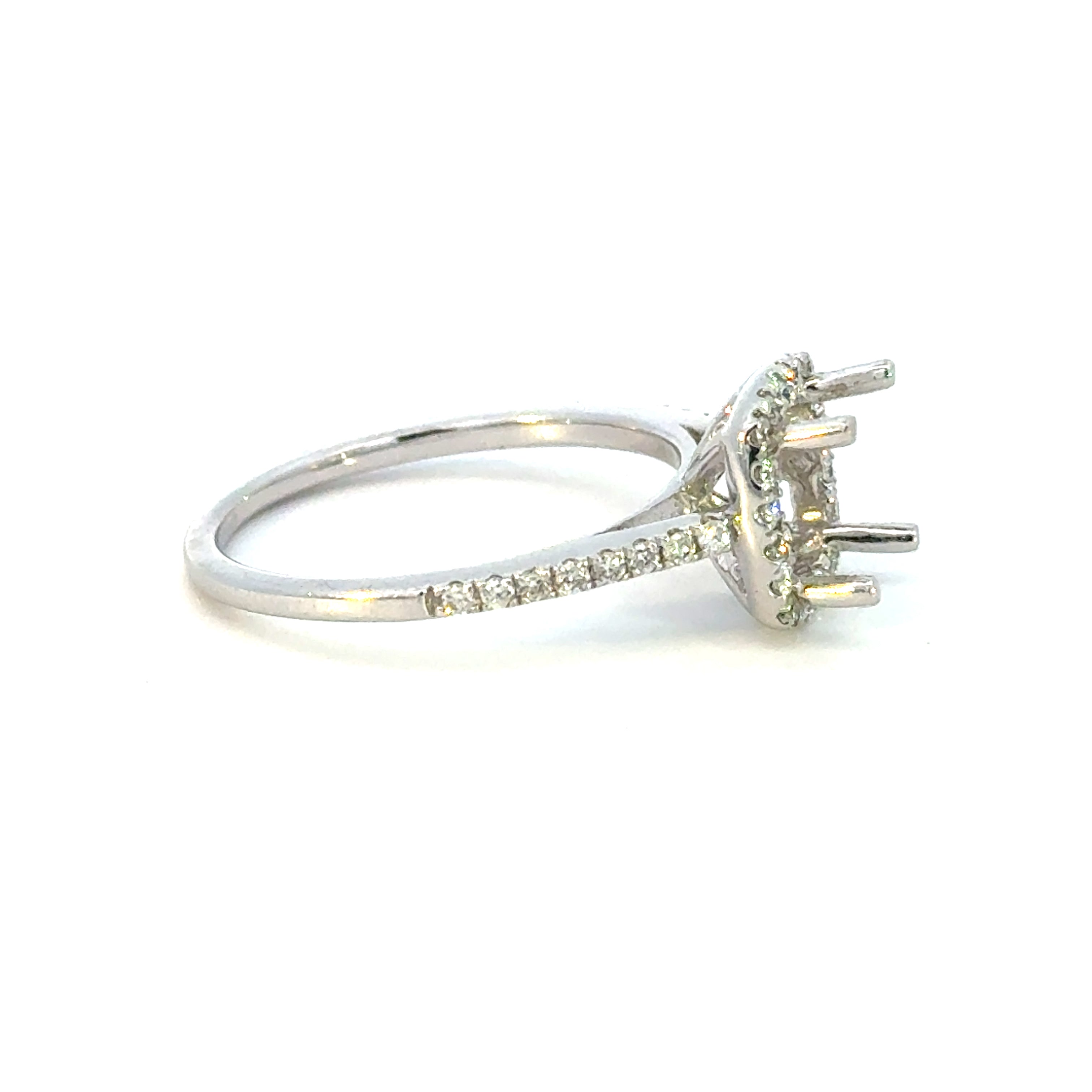 14K White Gold Cushion Halo Diamond Engagement Ring
