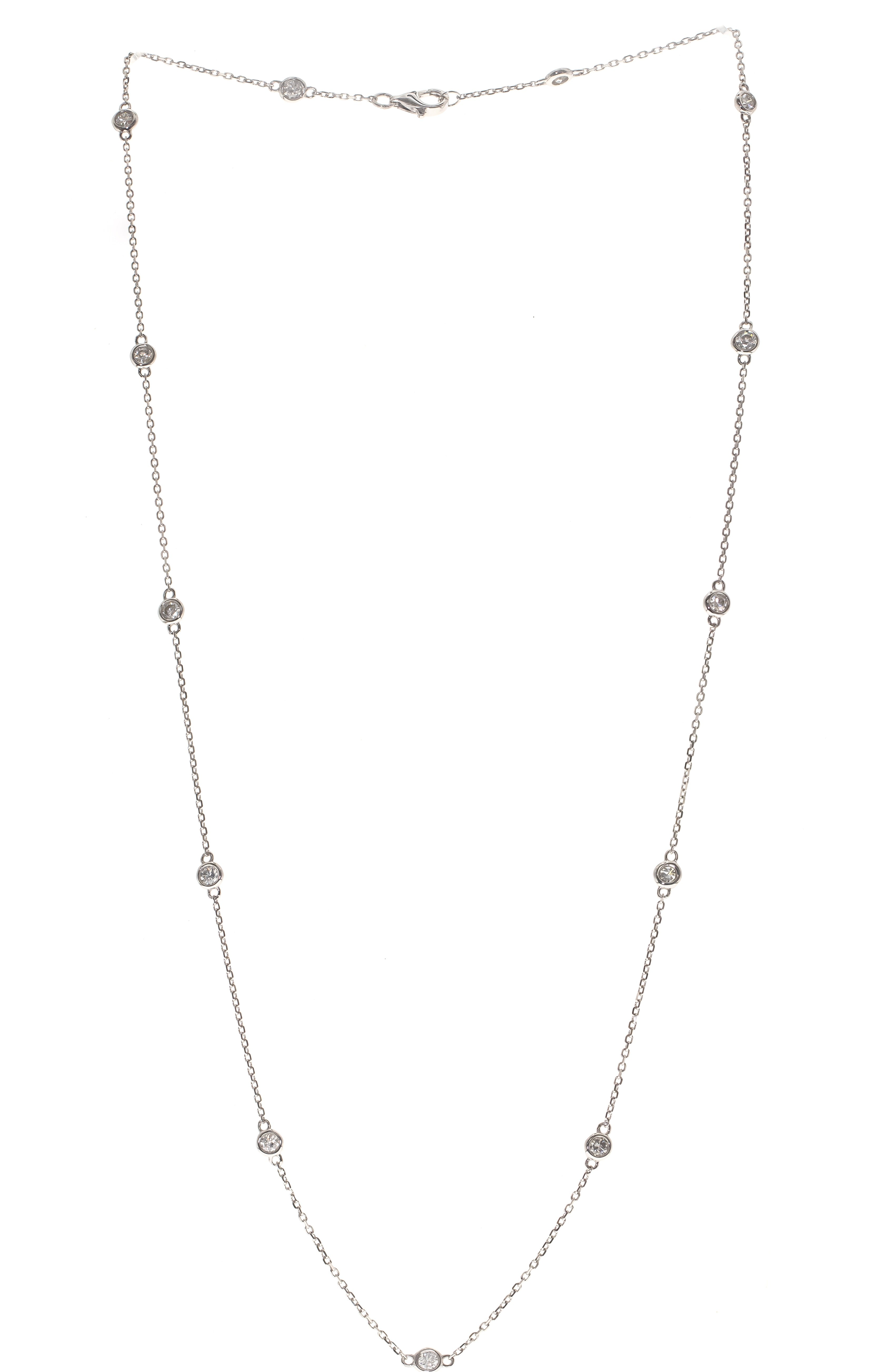 Classic and refined, this diamond station necklace features bezel-set diamonds evenly spaced along a polished 14K white gold chain. A timeless layering essential.