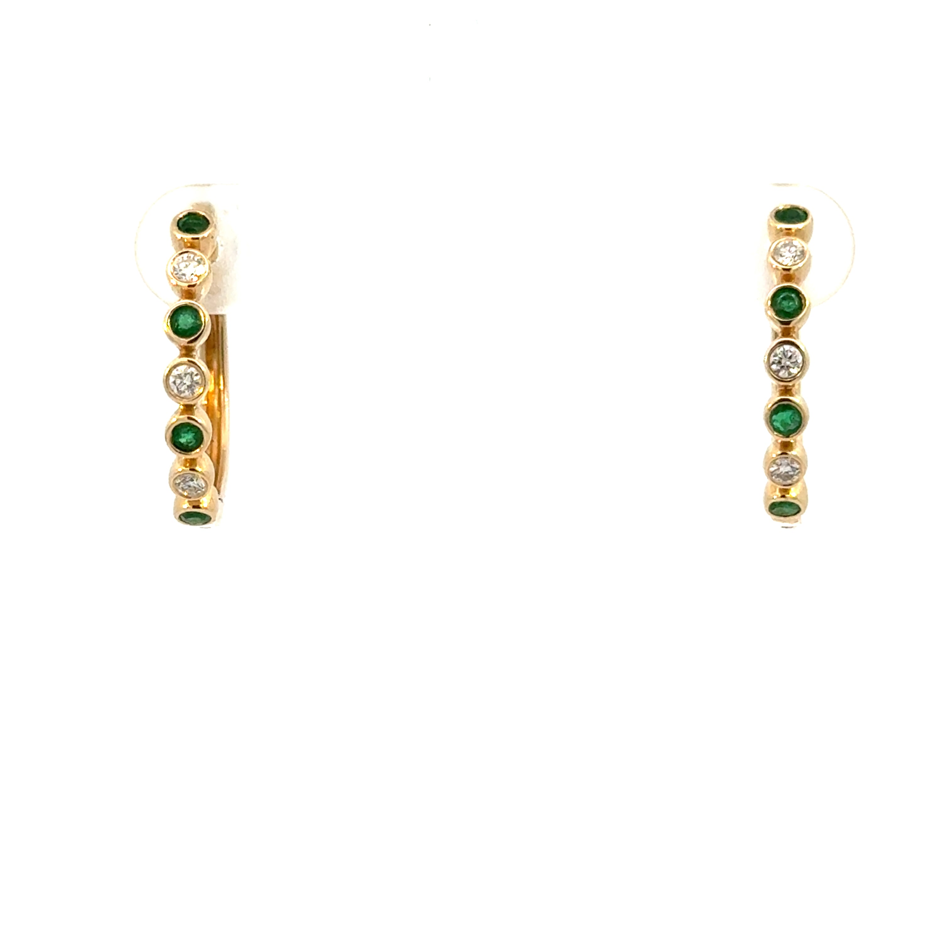 14K Yellow Gold Emerald & Diamond Hoop Earrings