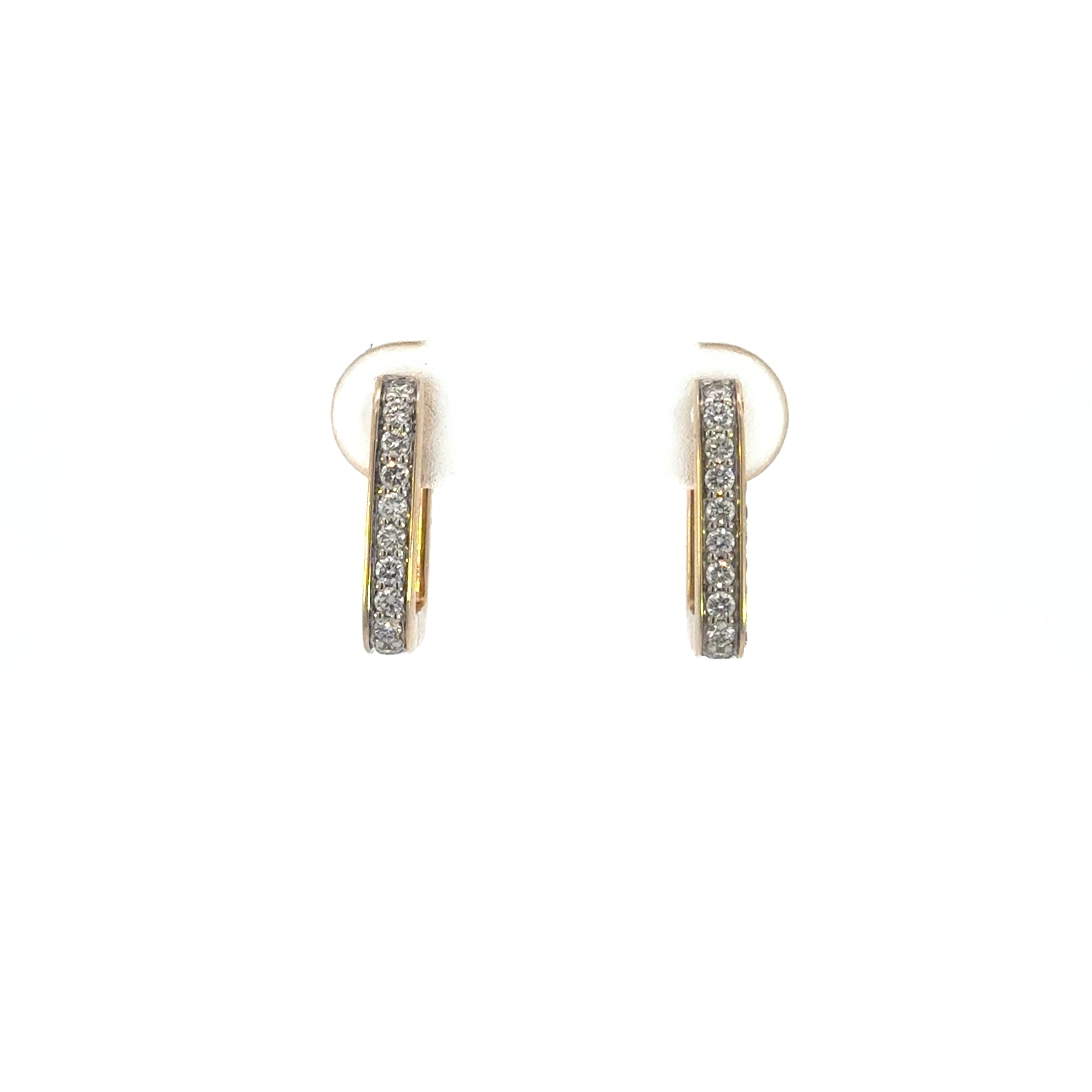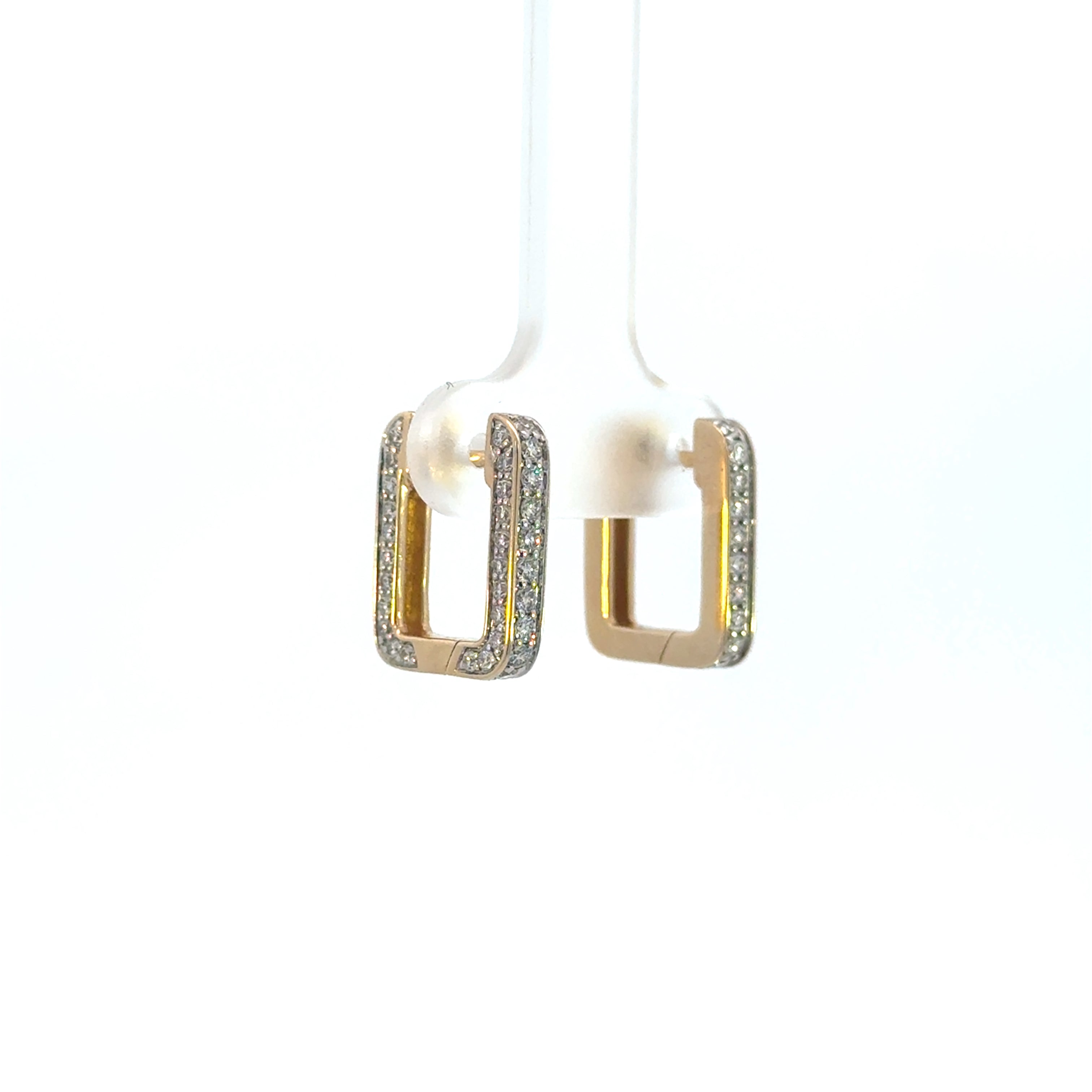 14K Yellow Gold Diamonds Rectangle Shape Hoop Earrings