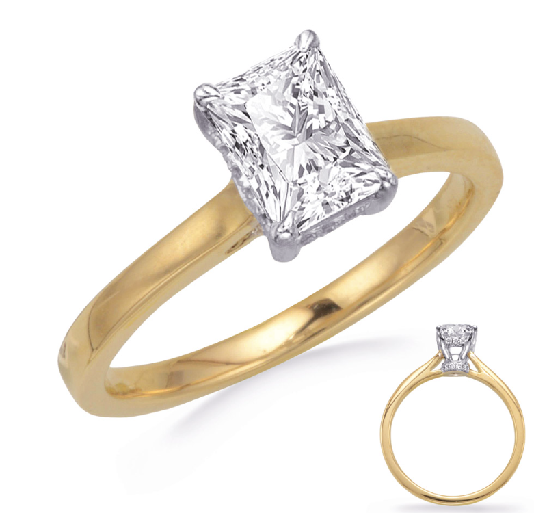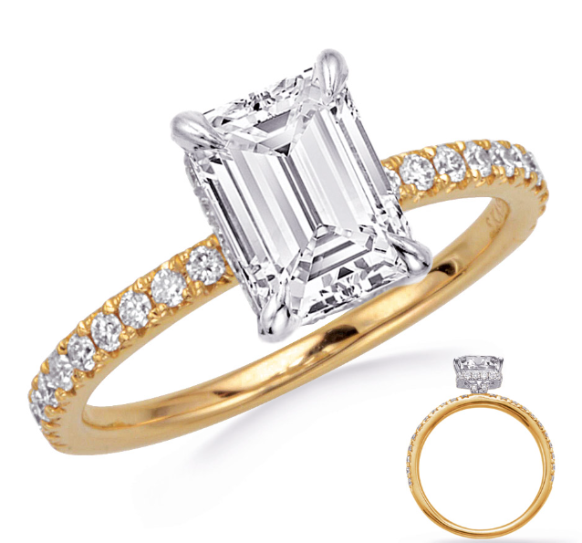 Emerald-Cut Diamond Engagement Ring Mounting in 14K Two-Tone Gold