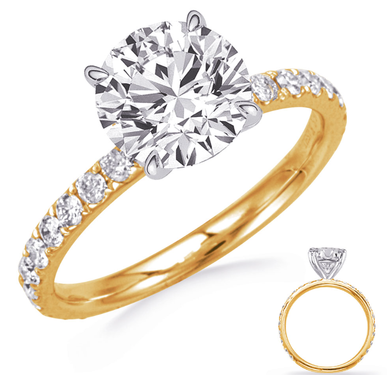 Round Diamond Prong-Set Engagement Ring Mounting in 14K Yellow & White Gold