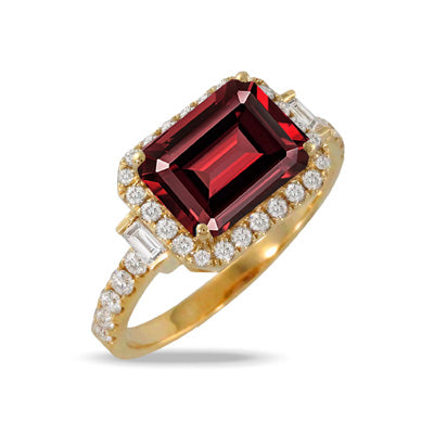 18K Yellow Gold Diamond Ring with Red Garnet