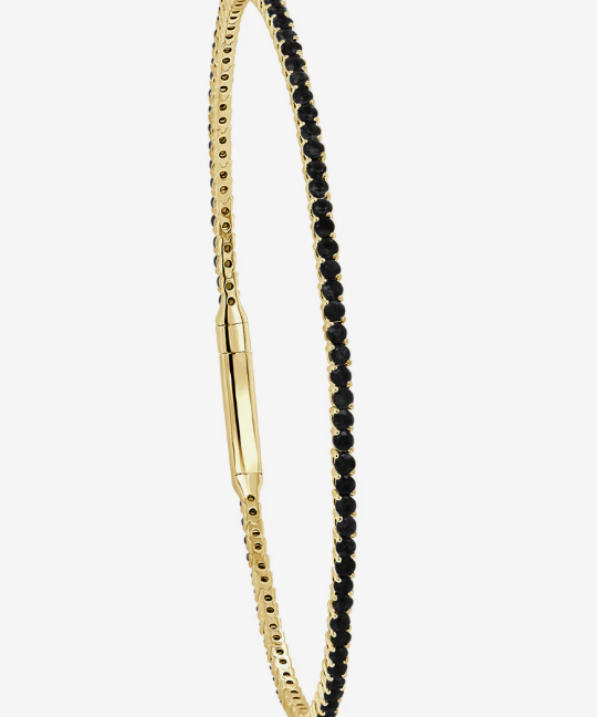 14K Yellow Gold Eternity Black Diamond Flexible Bangle Bracelet