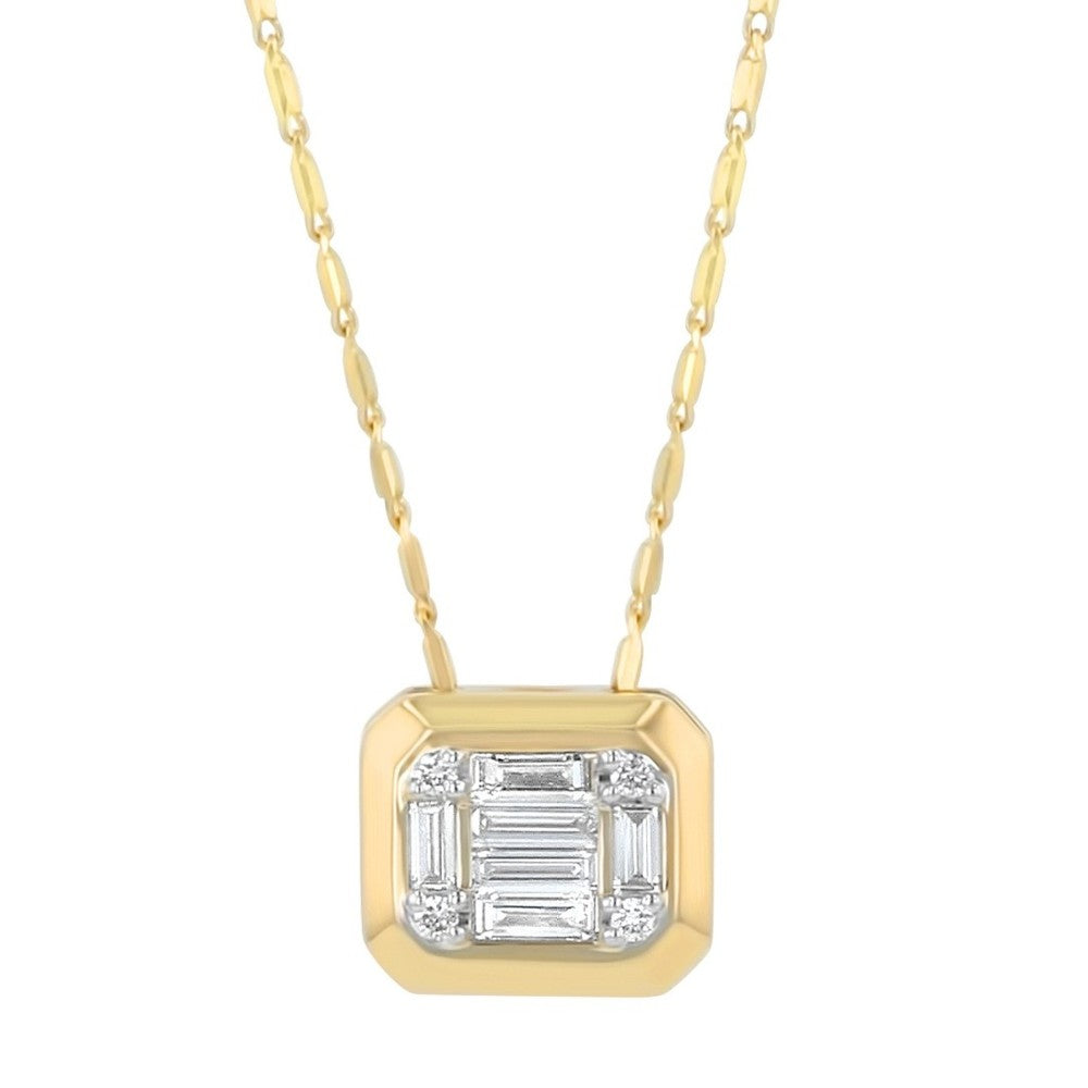 14K Yellow Gold Rectangle Diamond Necklace — Pendant Only