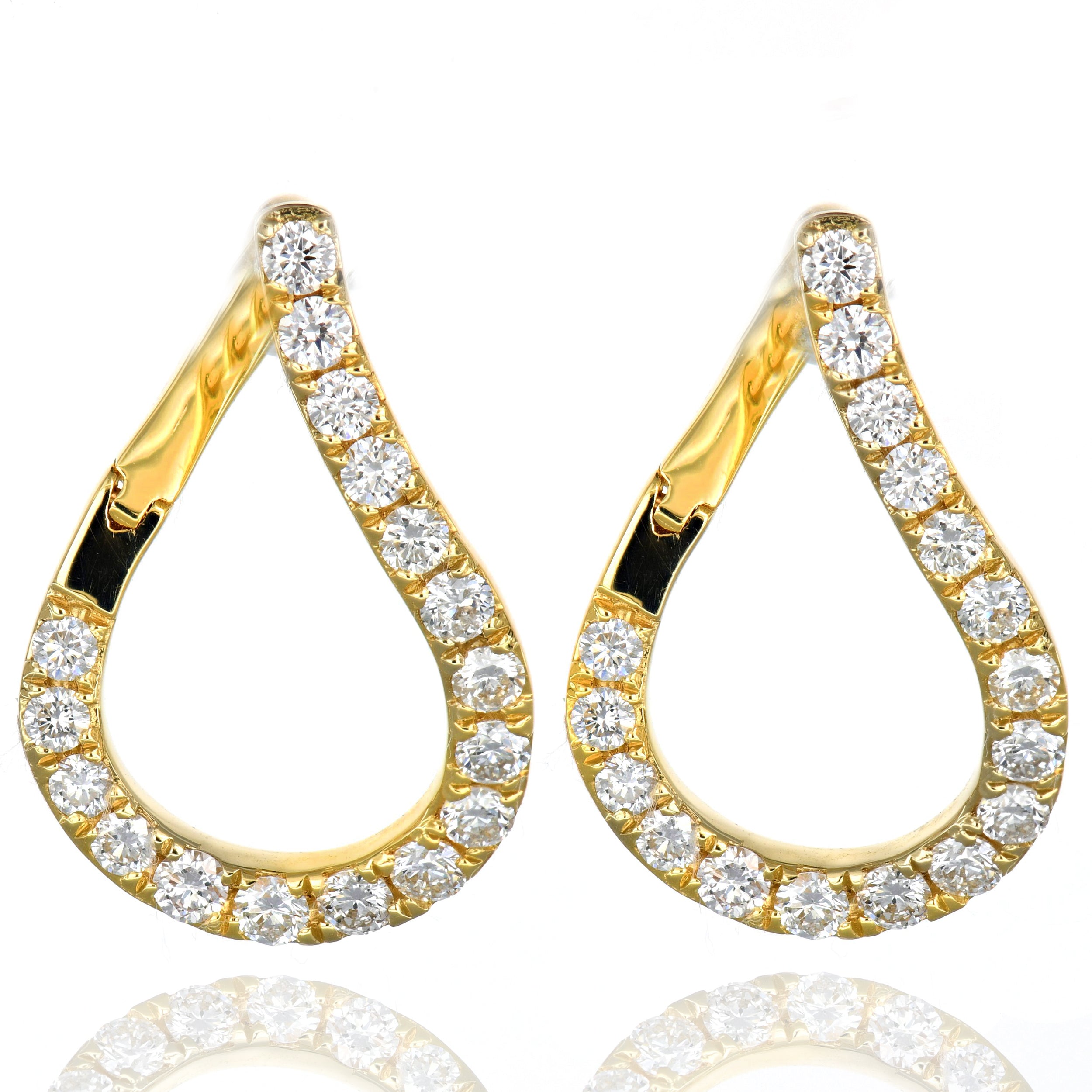 14K Yellow Gold Diamond Pear Shaped Hoops: