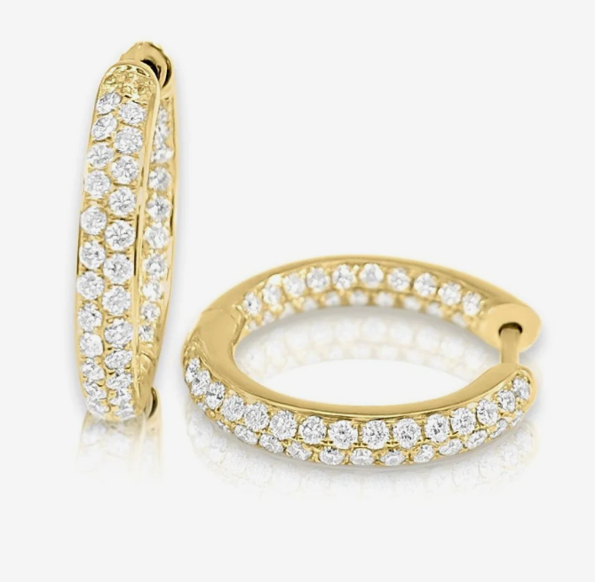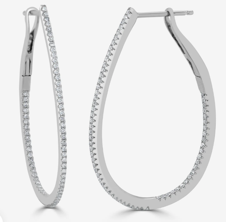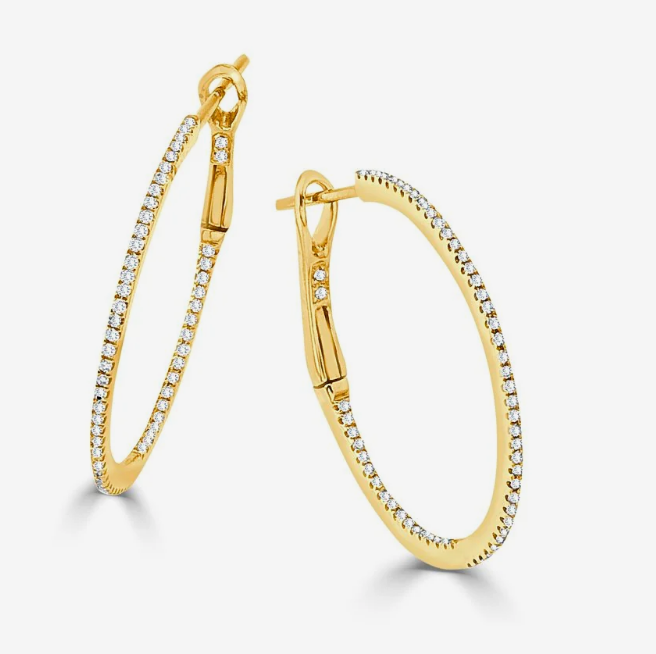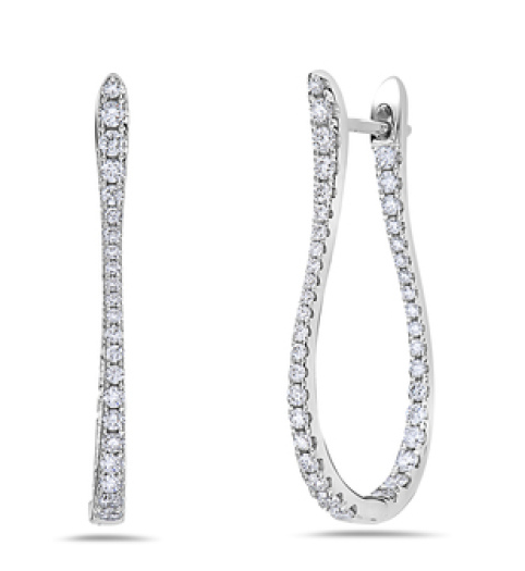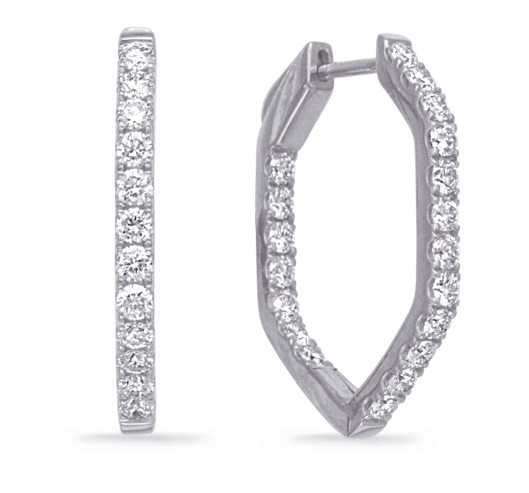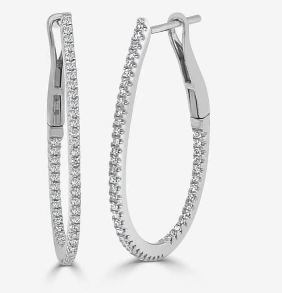 14K White Gold 1/2 Inch Inside-Outside Diamond Hoops