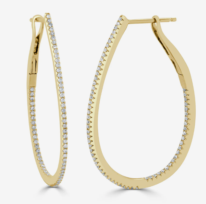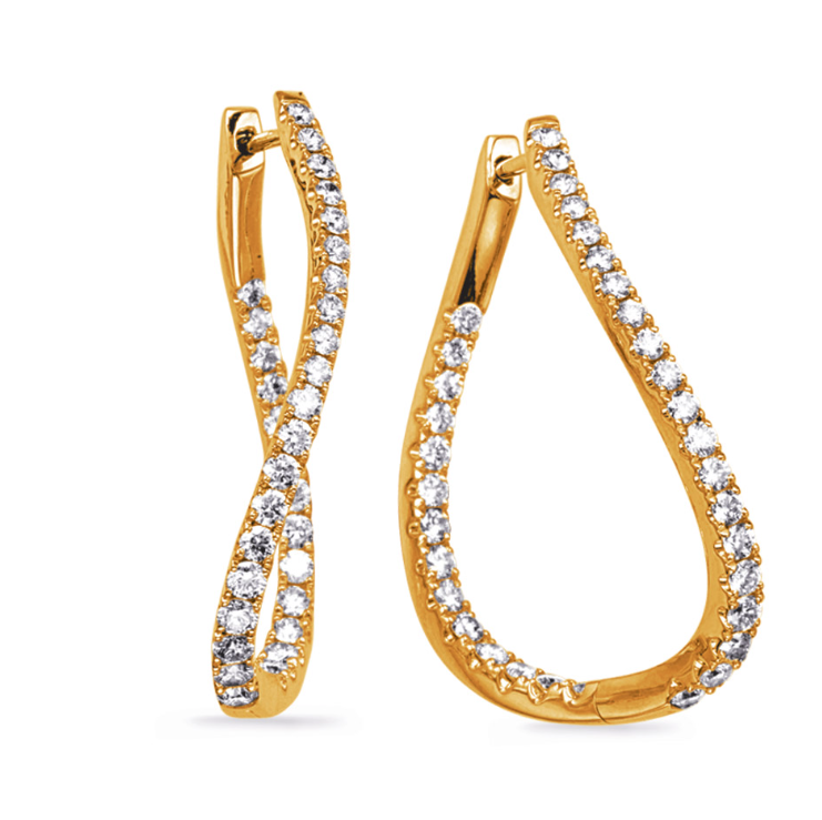 14K Yellow Gold Diamond Pear Shaped Inside Out Hoops: