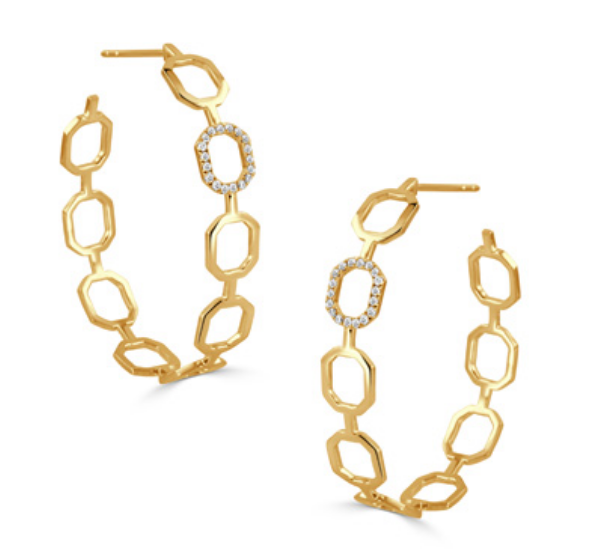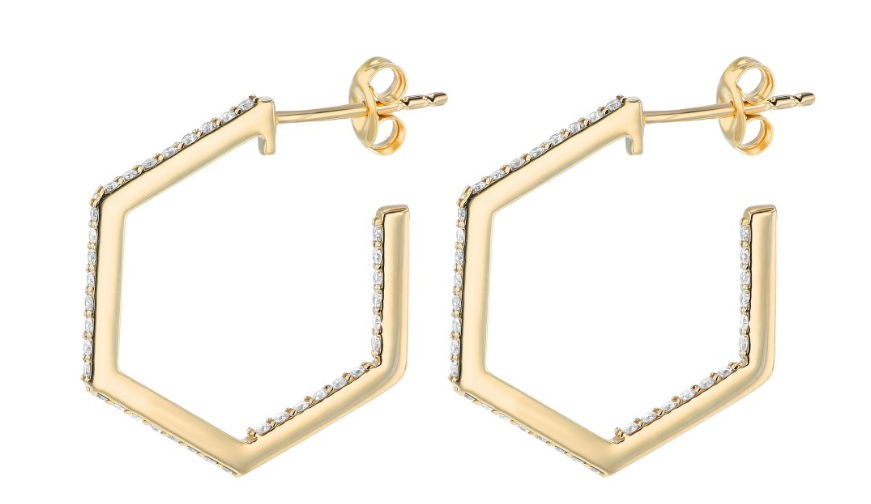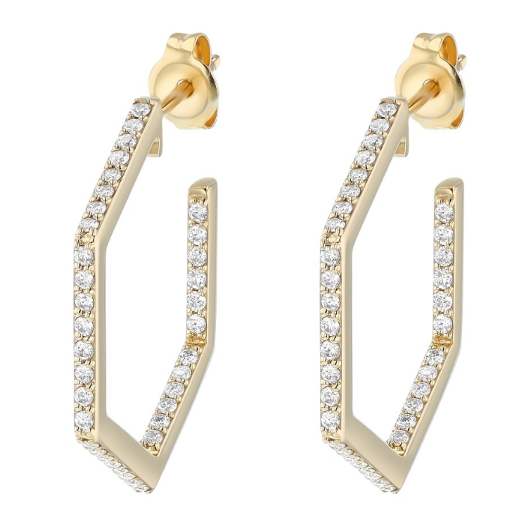 14K Yellow Gold Inside-Out Hexagon Diamond Earrings: