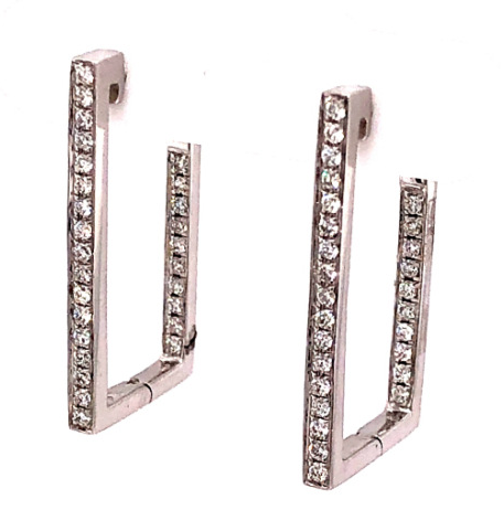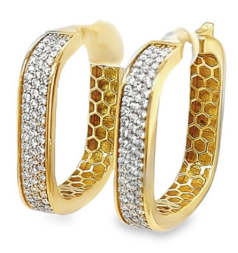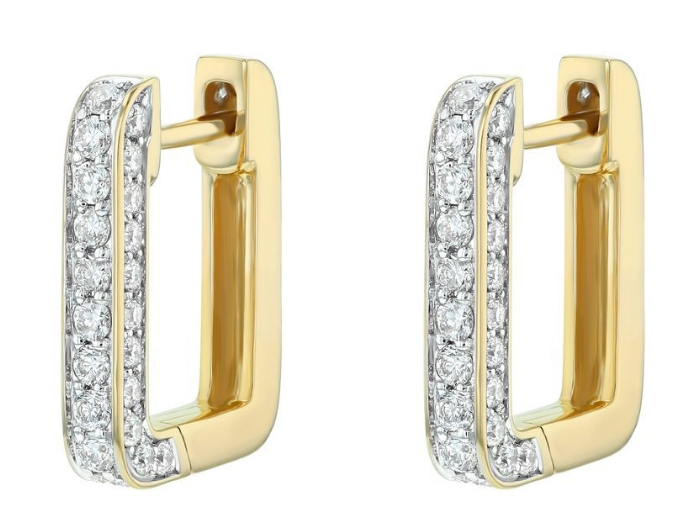 14K Yellow Gold Diamonds Rectangle Shape Hoop Earrings
