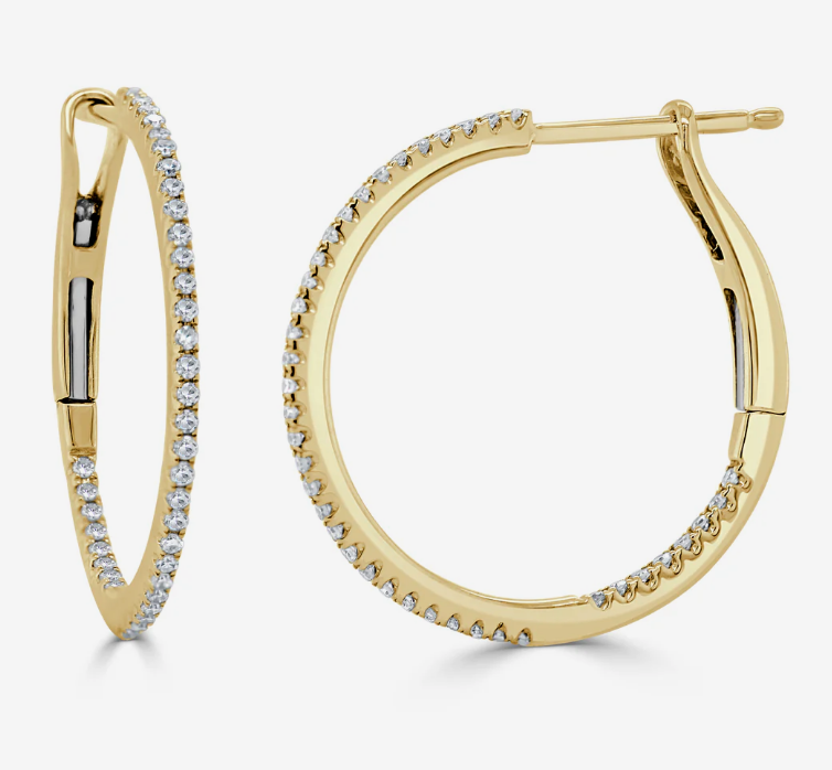 14K Yellow Gold & Diamond Inside-Out Hoop Earrings