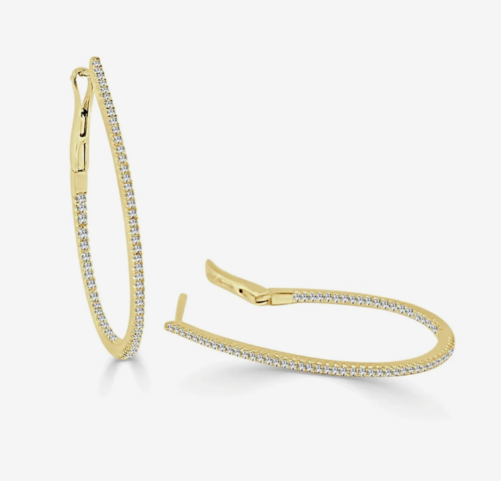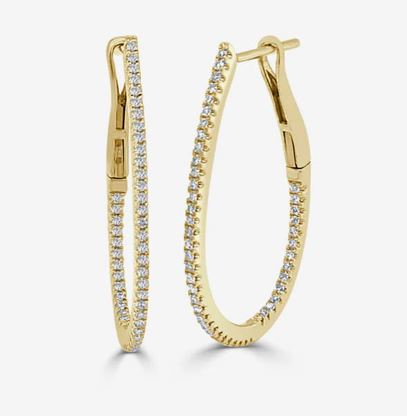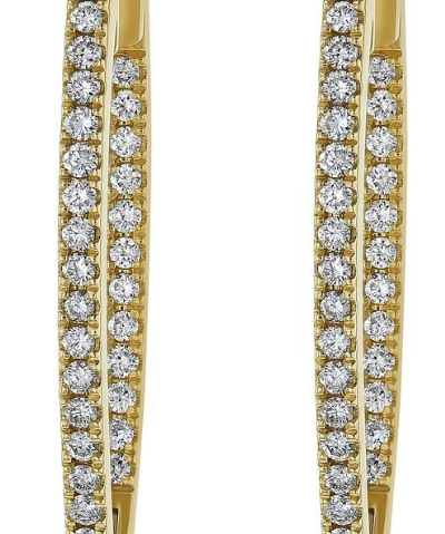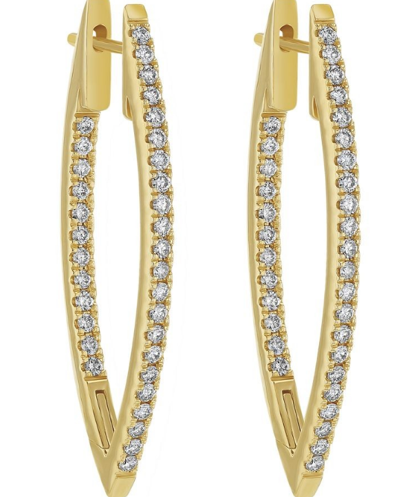 14K Yellow Gold Inside-Out Marquise Shape Diamond Hoop Earrings: