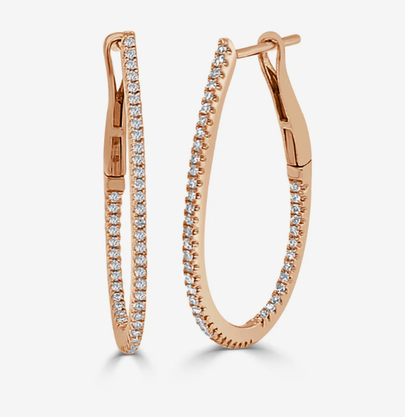 14K Rose Gold Diamond Pear Shaped Hoops: