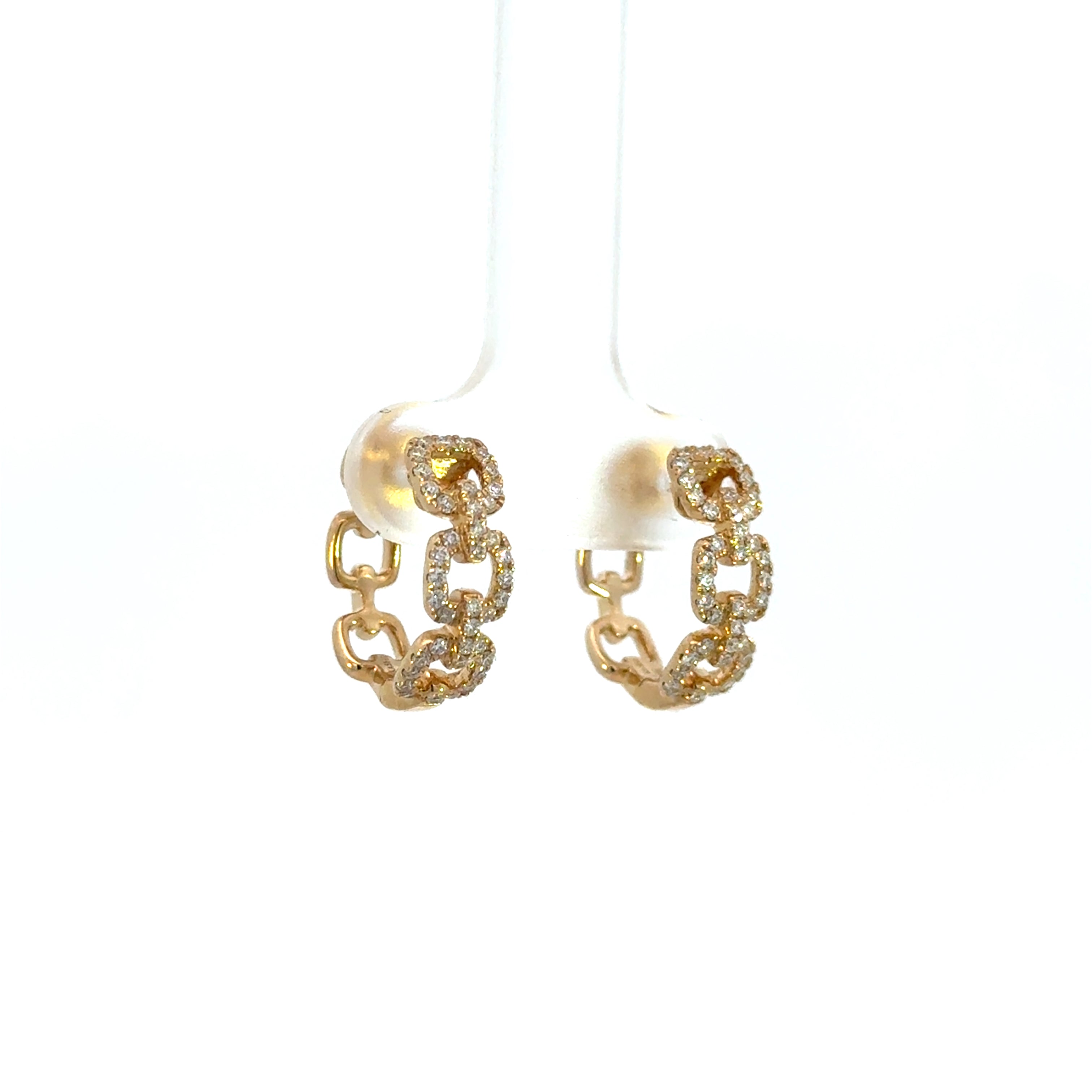 14K Yellow Gold Rectangular Hoop Diamond Earrings