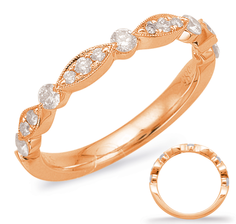 This band is available in 14K Rose Gold. There are a total of 15 stones. There are round diamonds with a total carat weight of 0.29ct set in a Micro Prong / Prong Set setting. Style # EN7866-B50RG