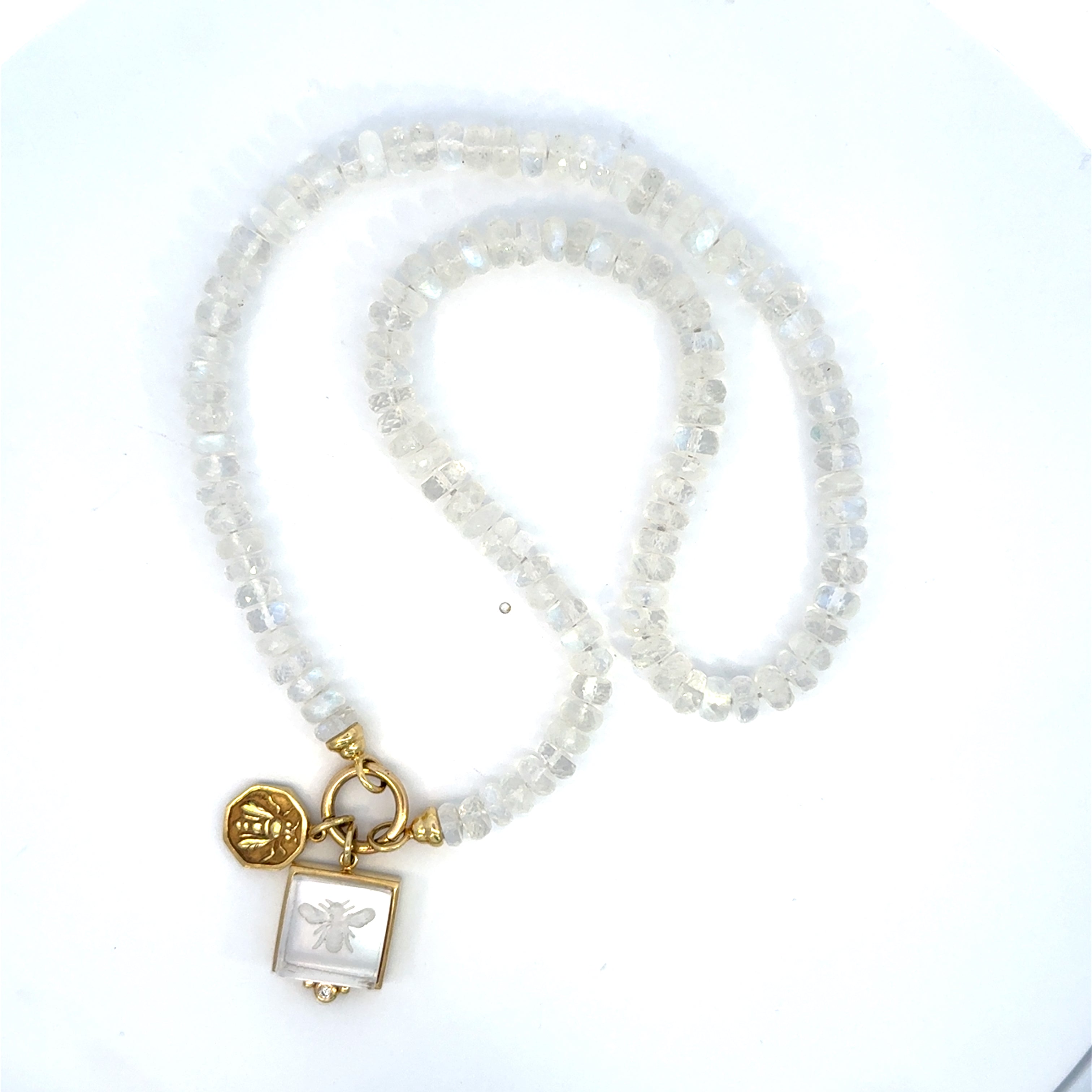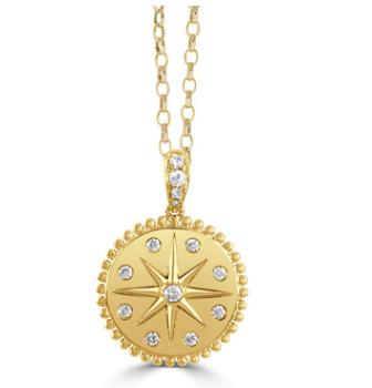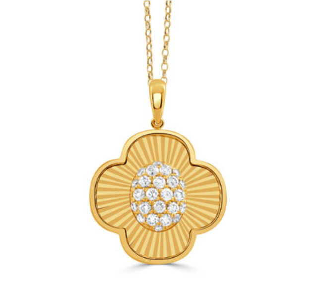 18K Yellow Gold Diamond Pendant with White Mother of Pearl