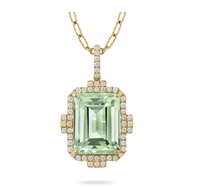 18K Yellow Gold Diamond Pendant with Green Amethyst