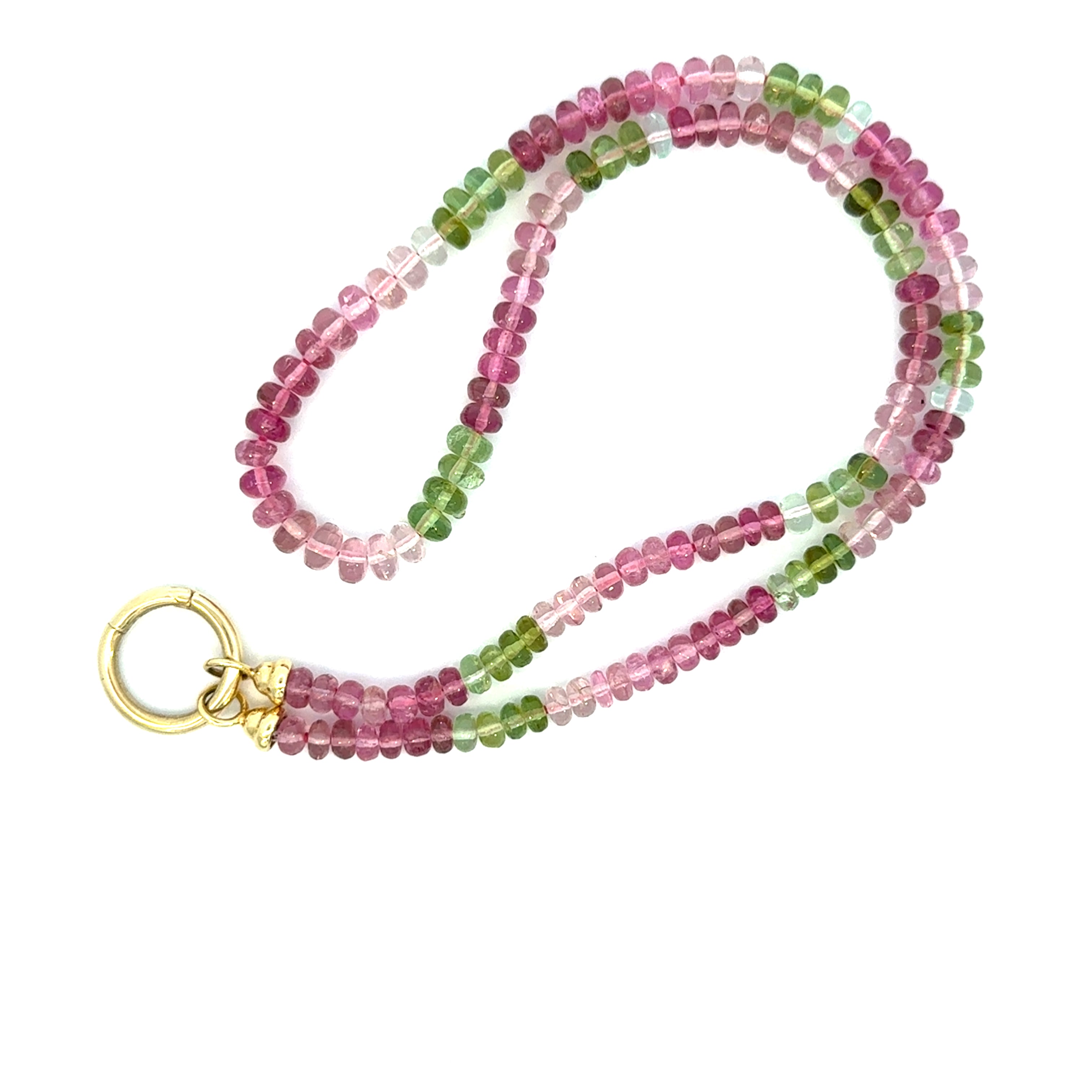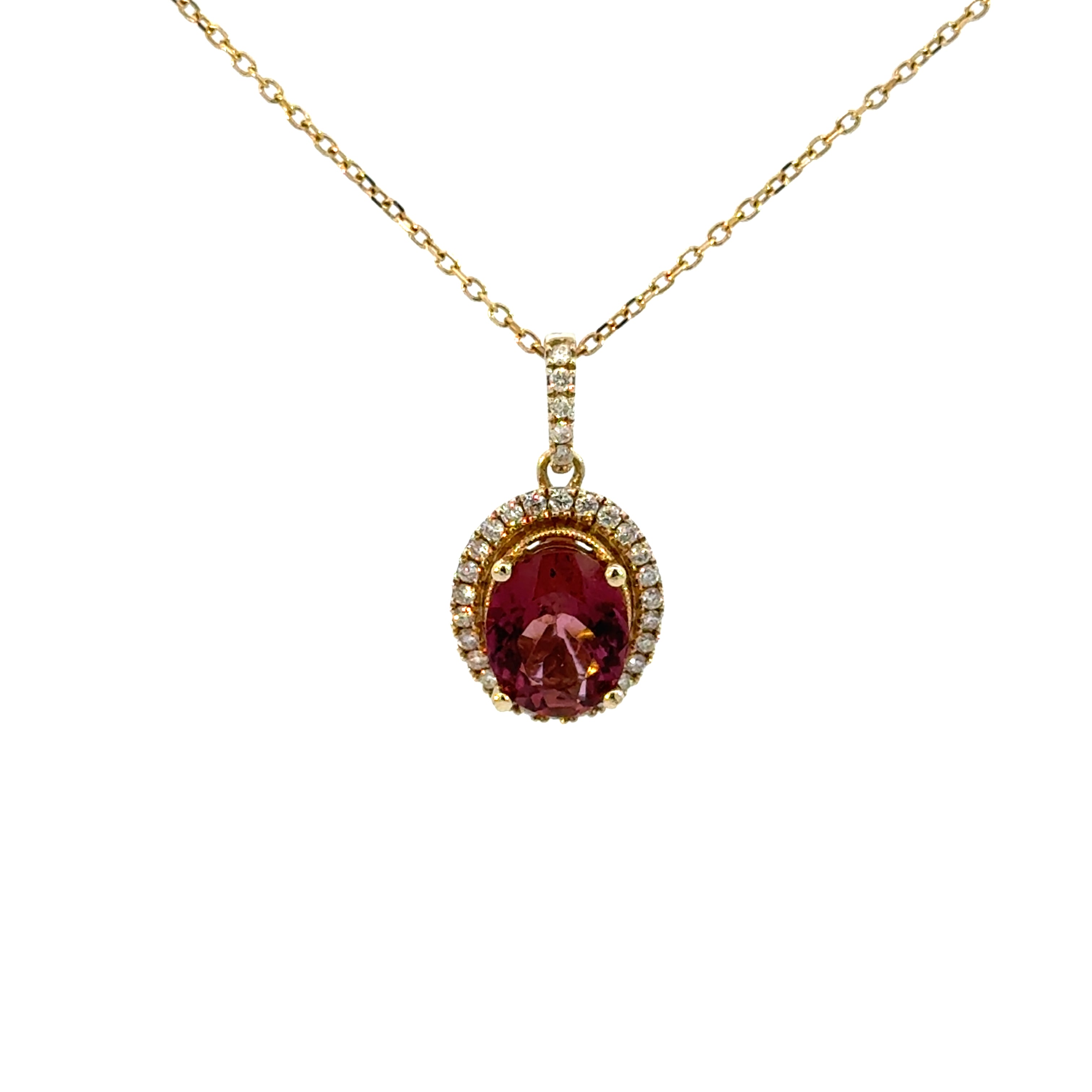 14K Yellow Gold Oval Pink Tourmaline & Diamond Pendant Necklace