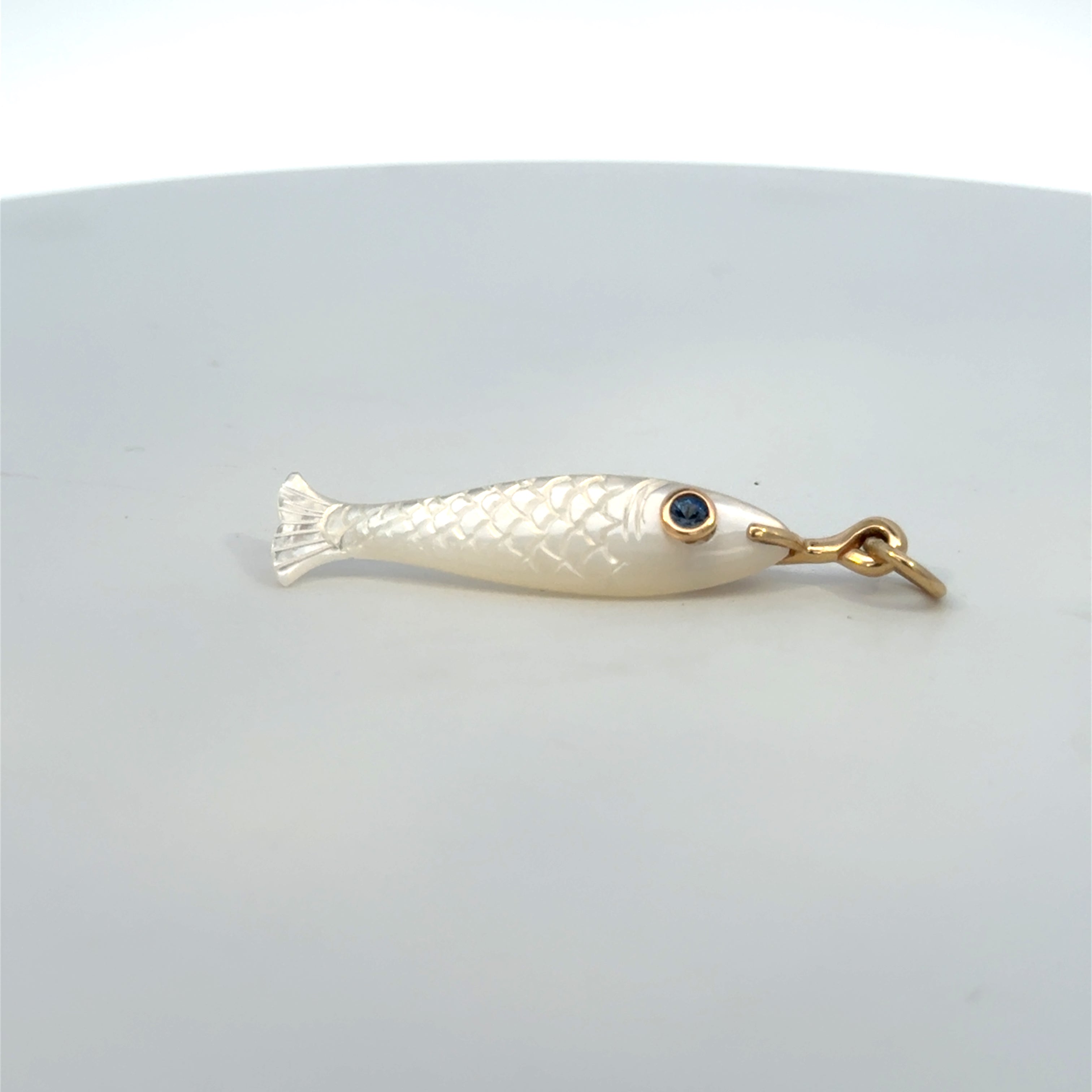 14K Yellow Gold Carved Mother-of-Pearl Fish Charm