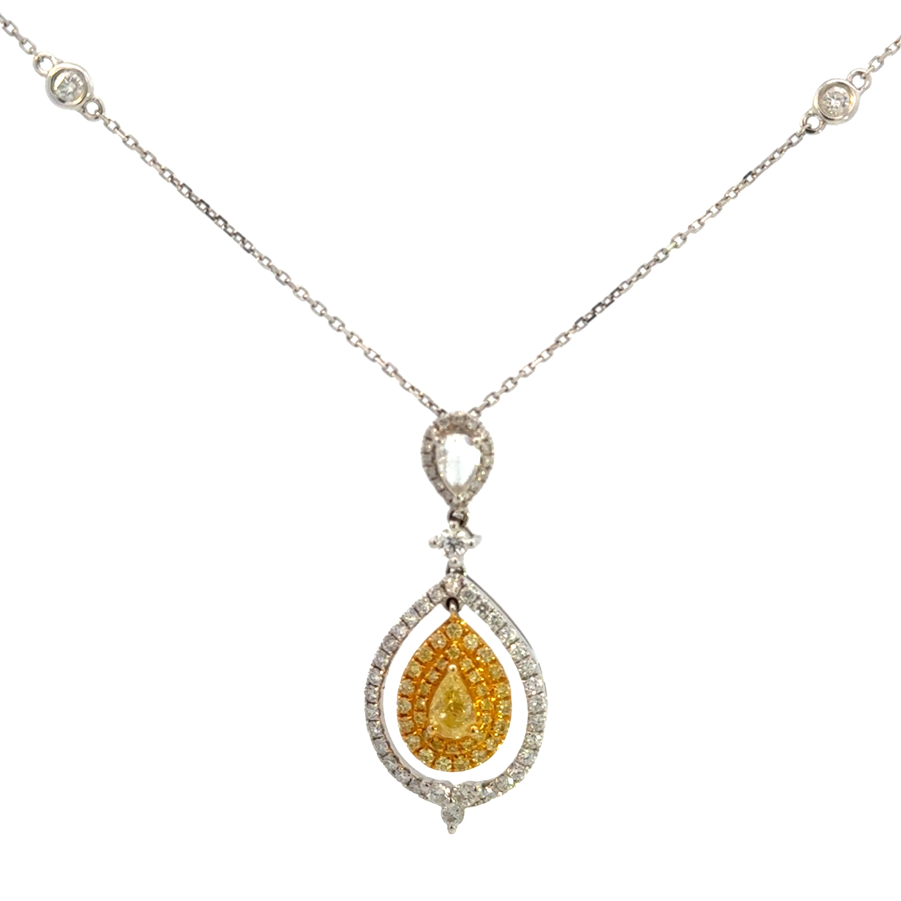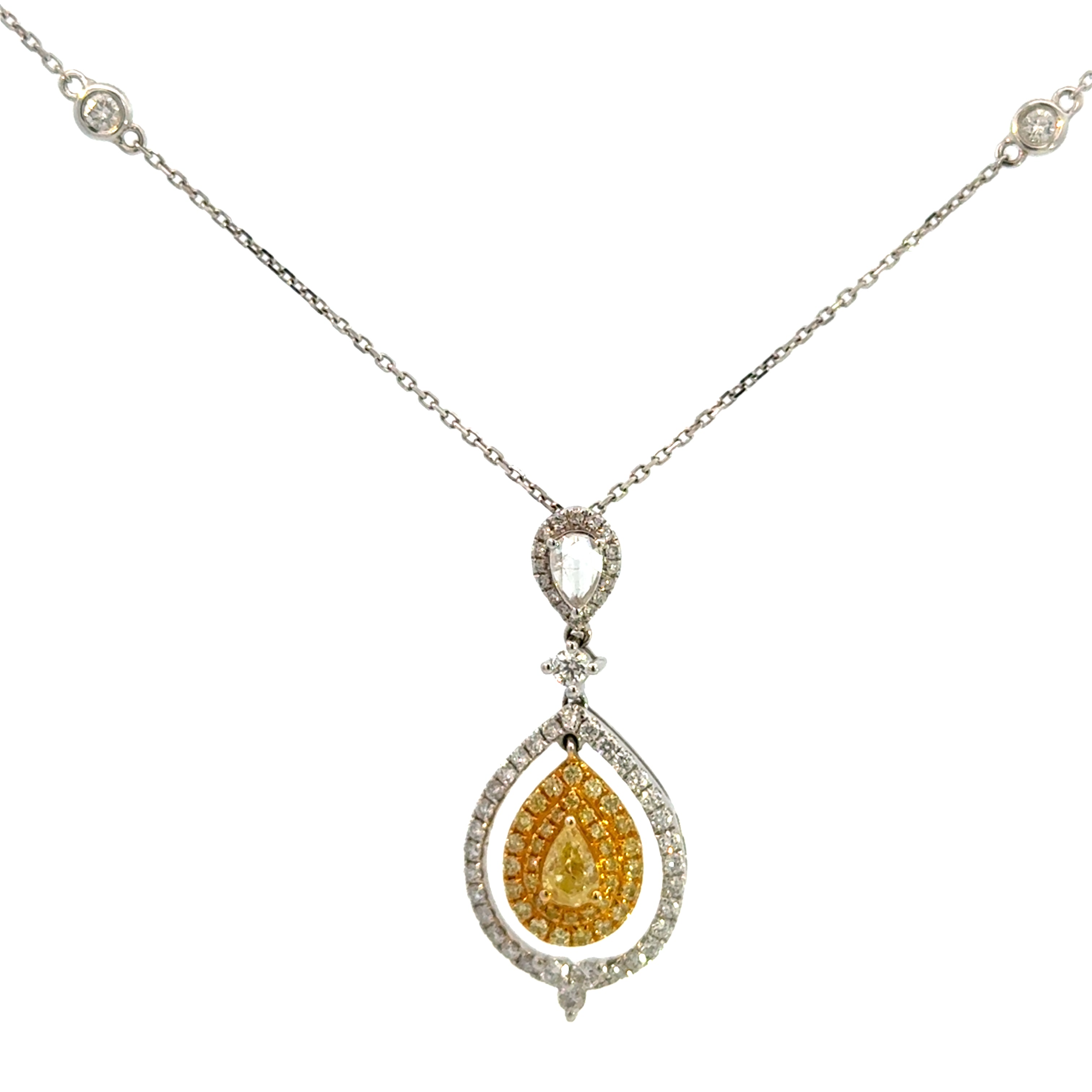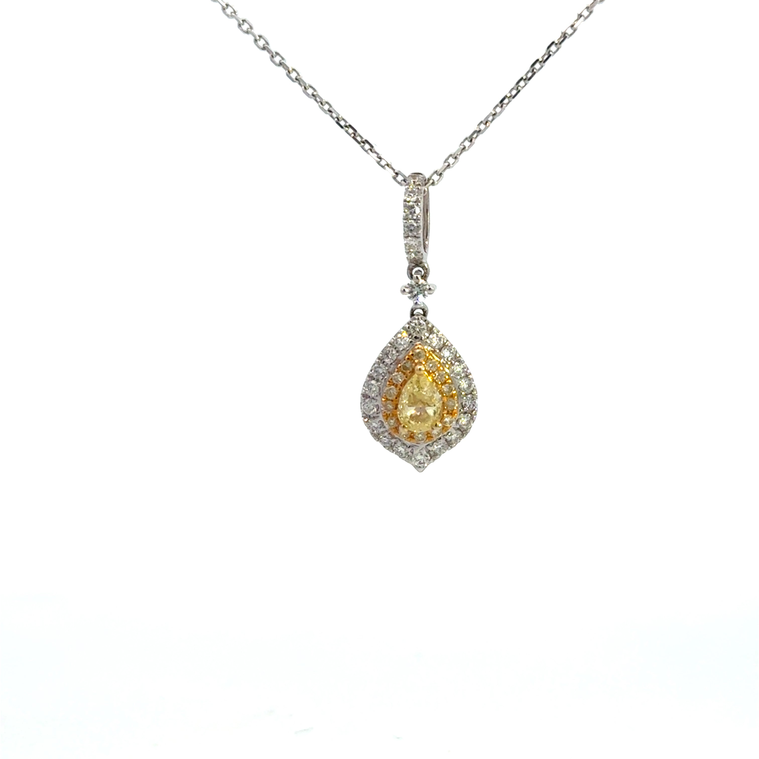 14K TT Gold Yellow Diamond Teardrop Pendant Necklace