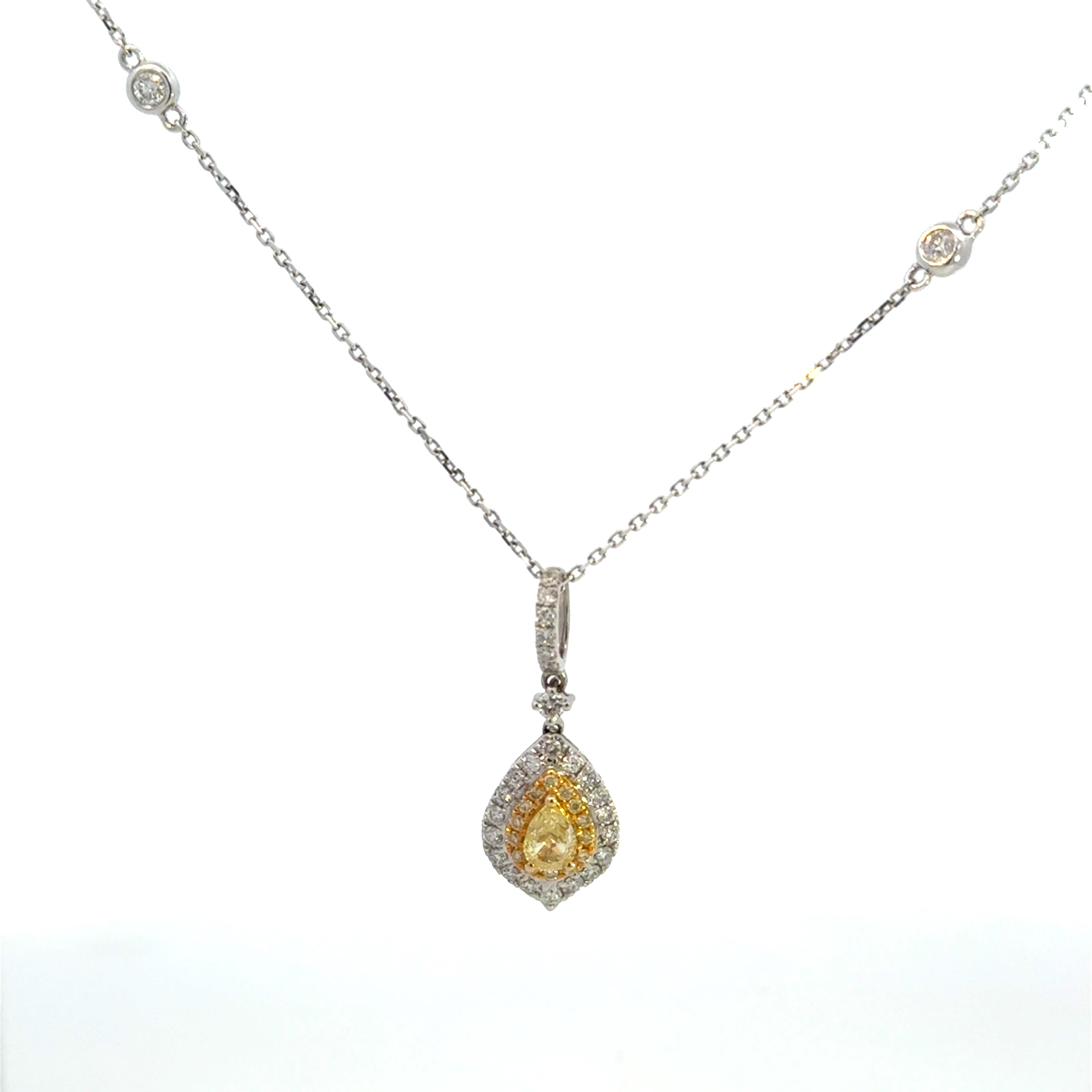 14K White Gold Yellow Diamond Halo Pendant Necklace