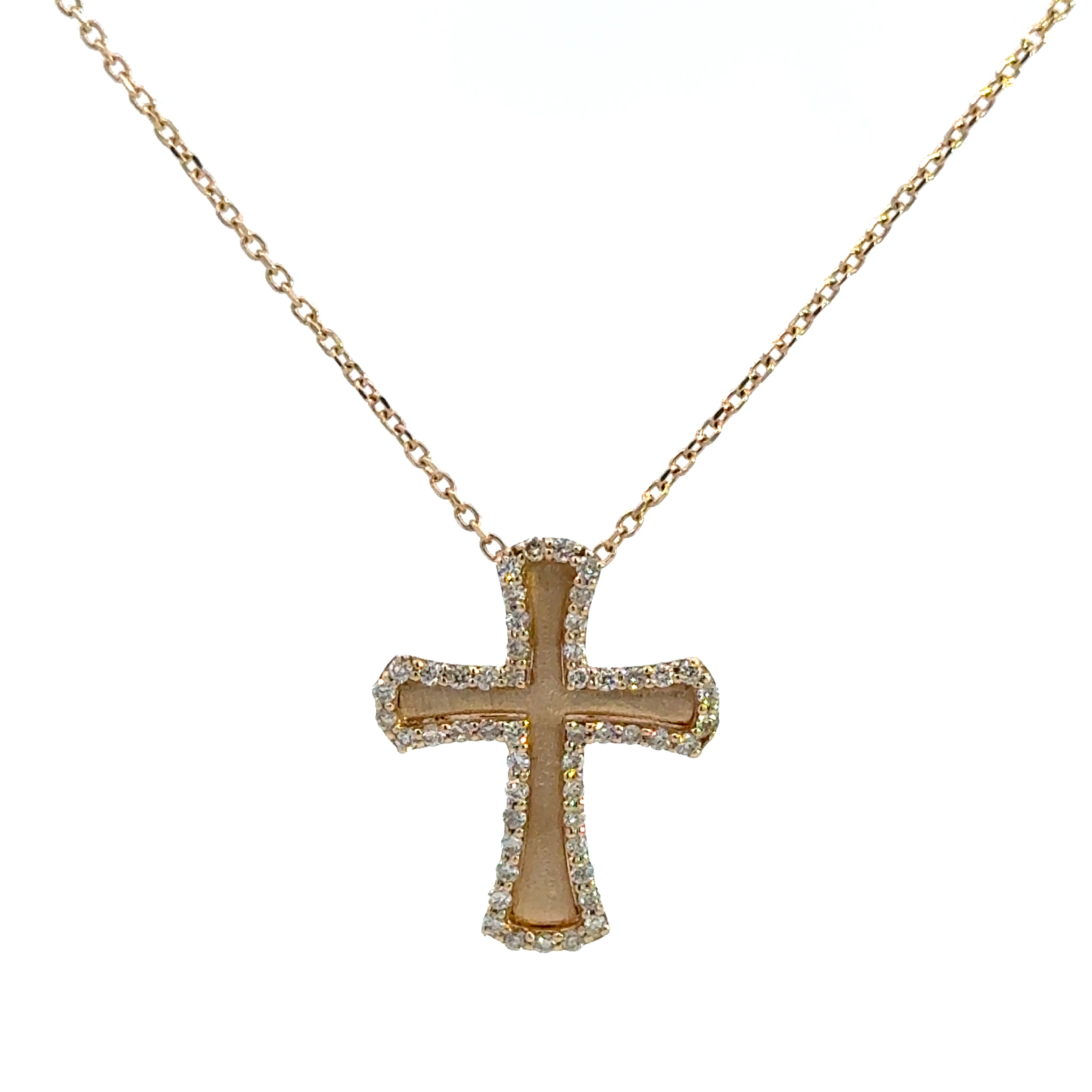 14k Yellow Gold Diamond Cross Pendant Necklace