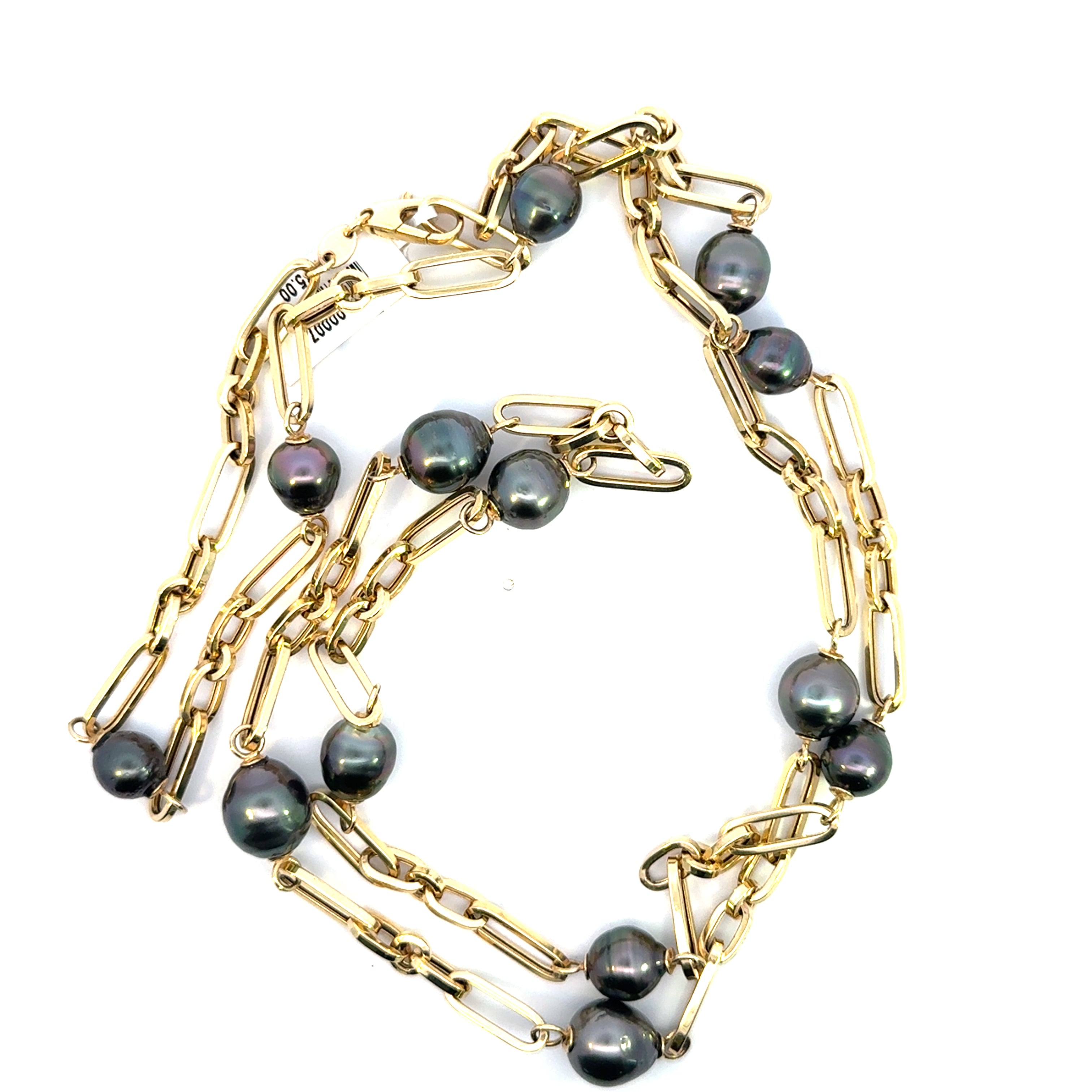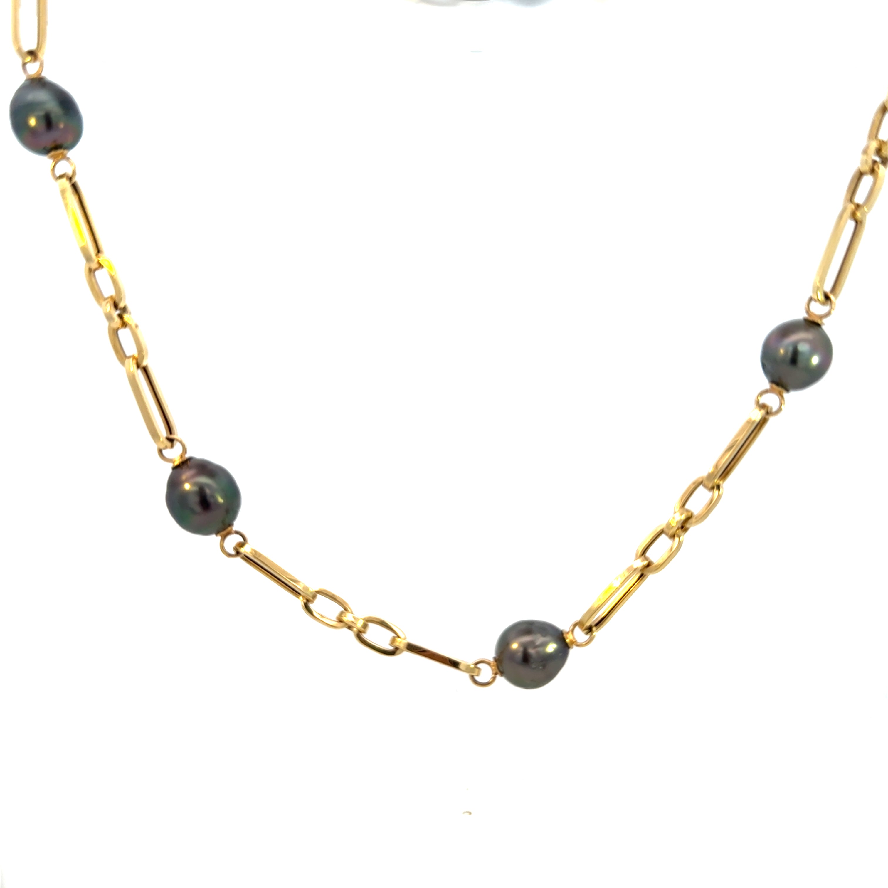 14K Yellow Gold Black Pearl & Gold Paperclip Necklace