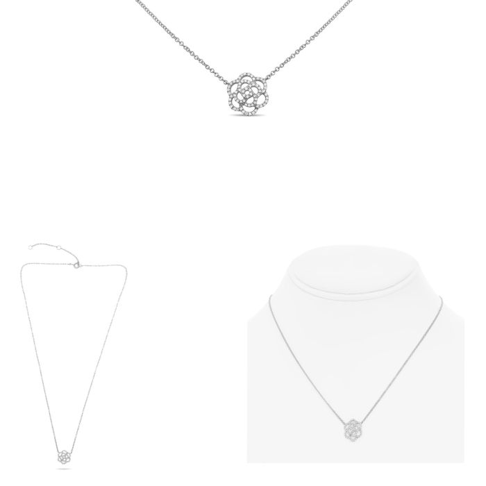 14k White Gold Classic Diamond Halo Solitaire Necklace