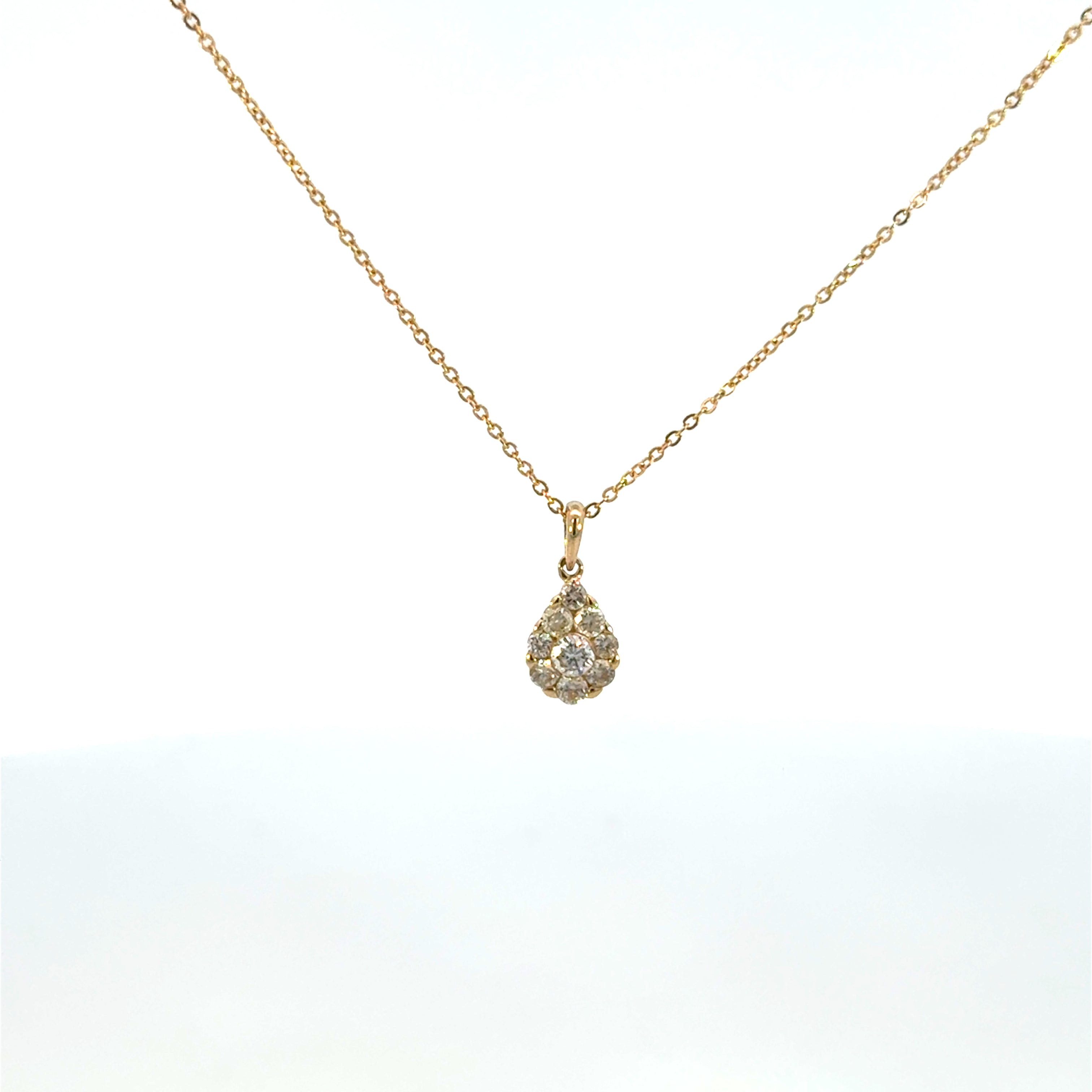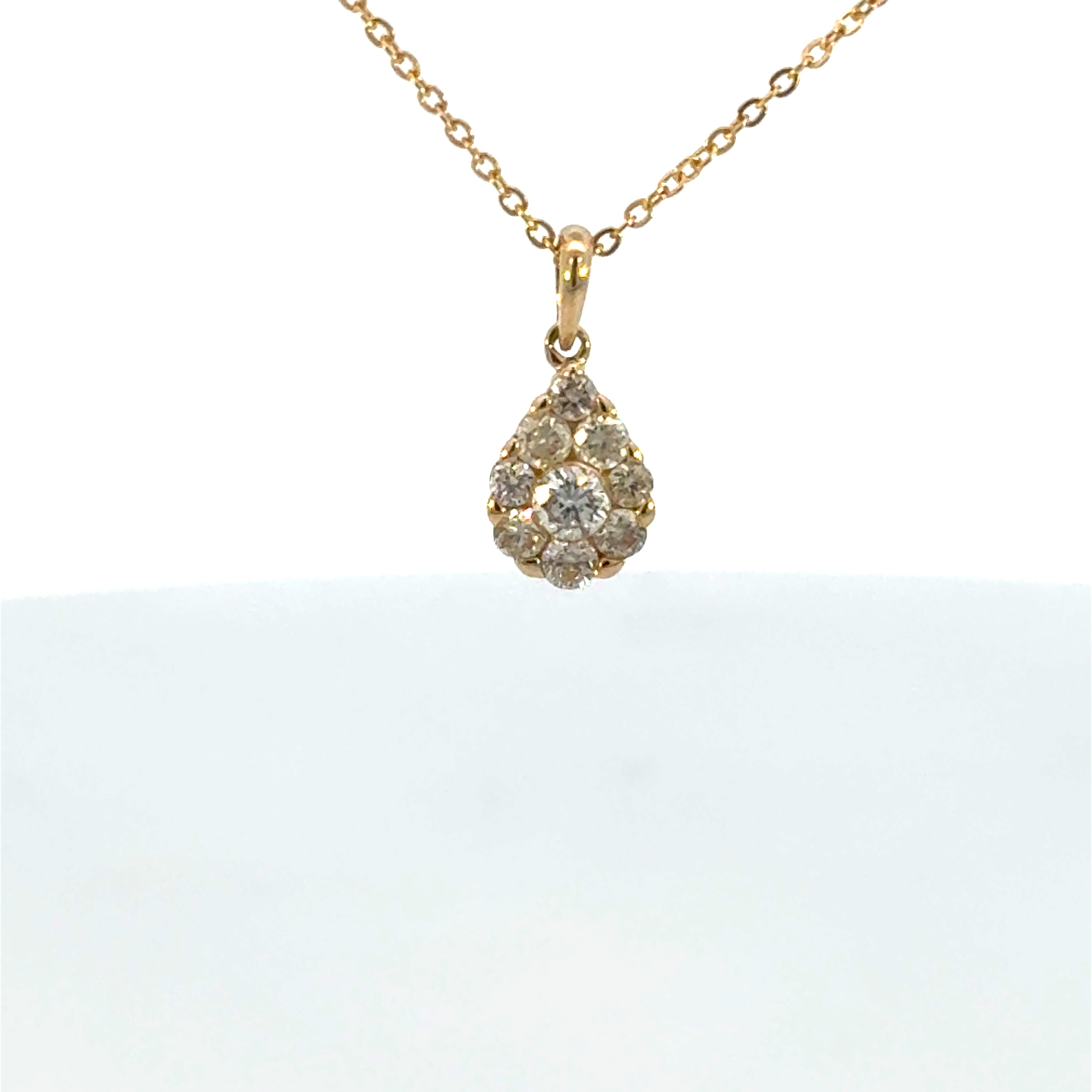 14k Yellow Gold Diamond Cluster Teardrop Pendant