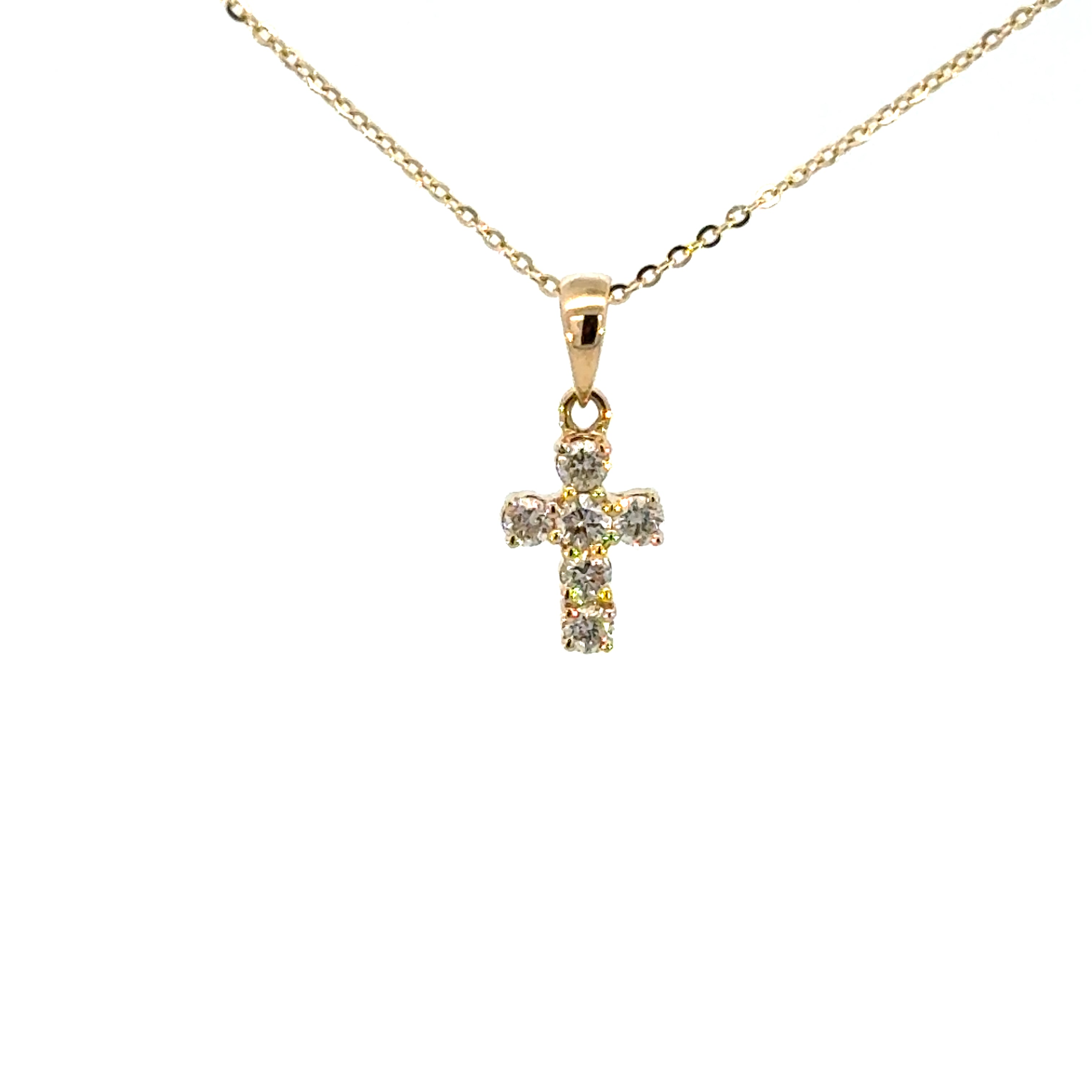 14K Yellow Gold Diamond Cross Pendant Necklace