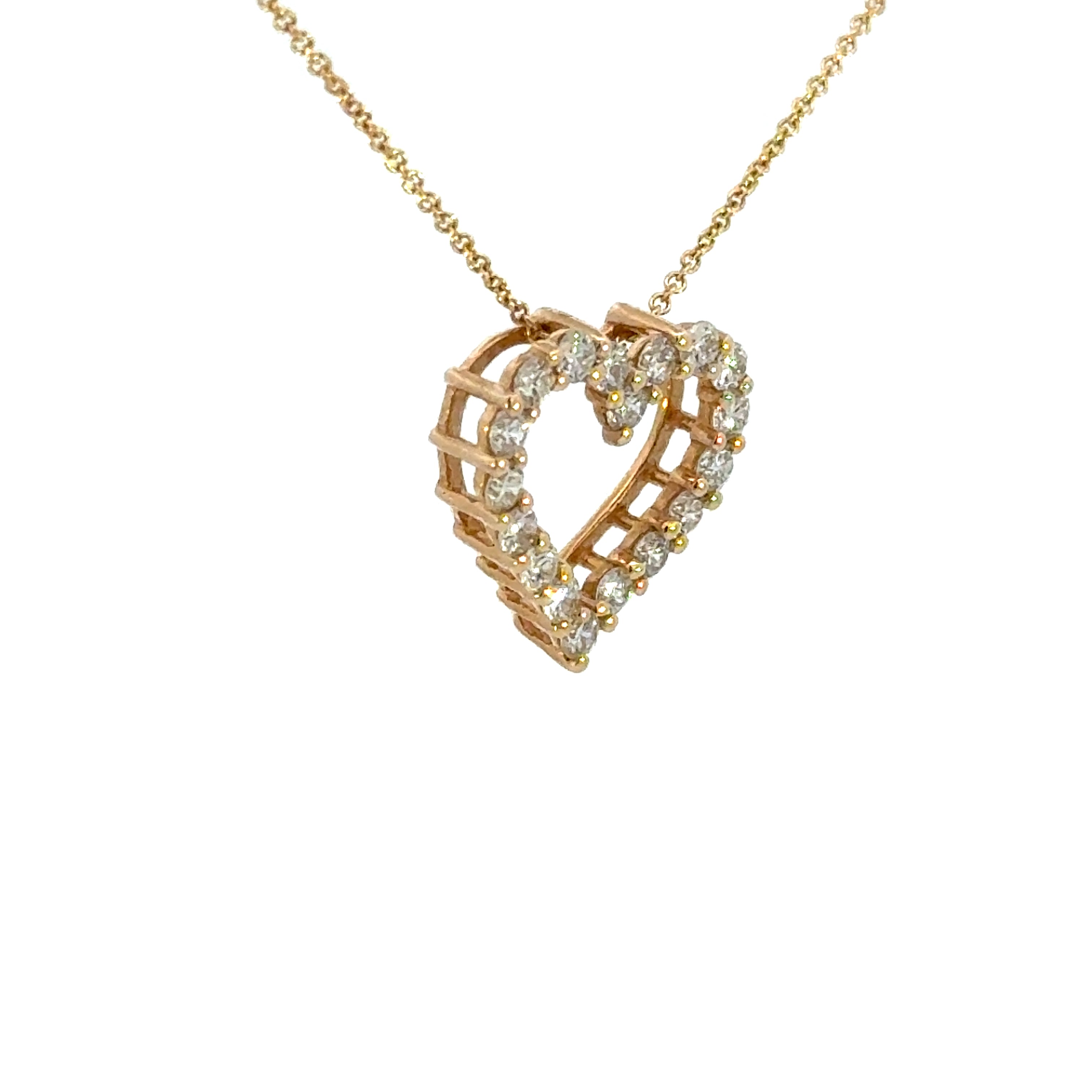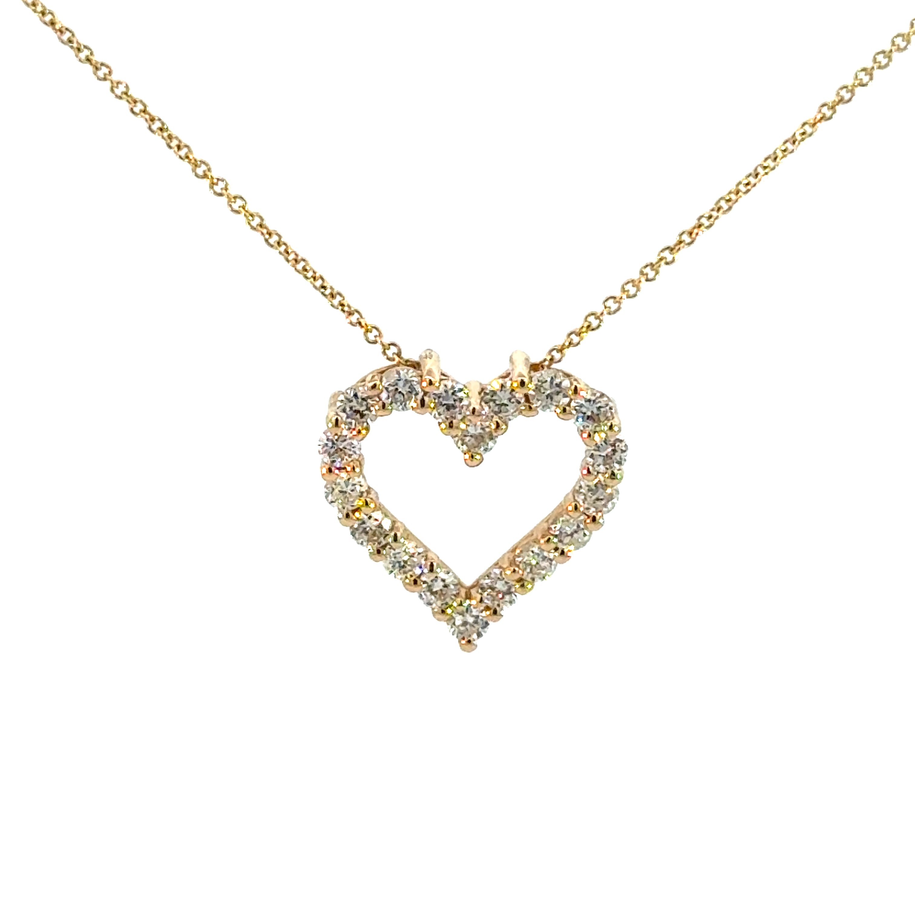 14K Yellow Gold Heart Diamond Pendant Necklace