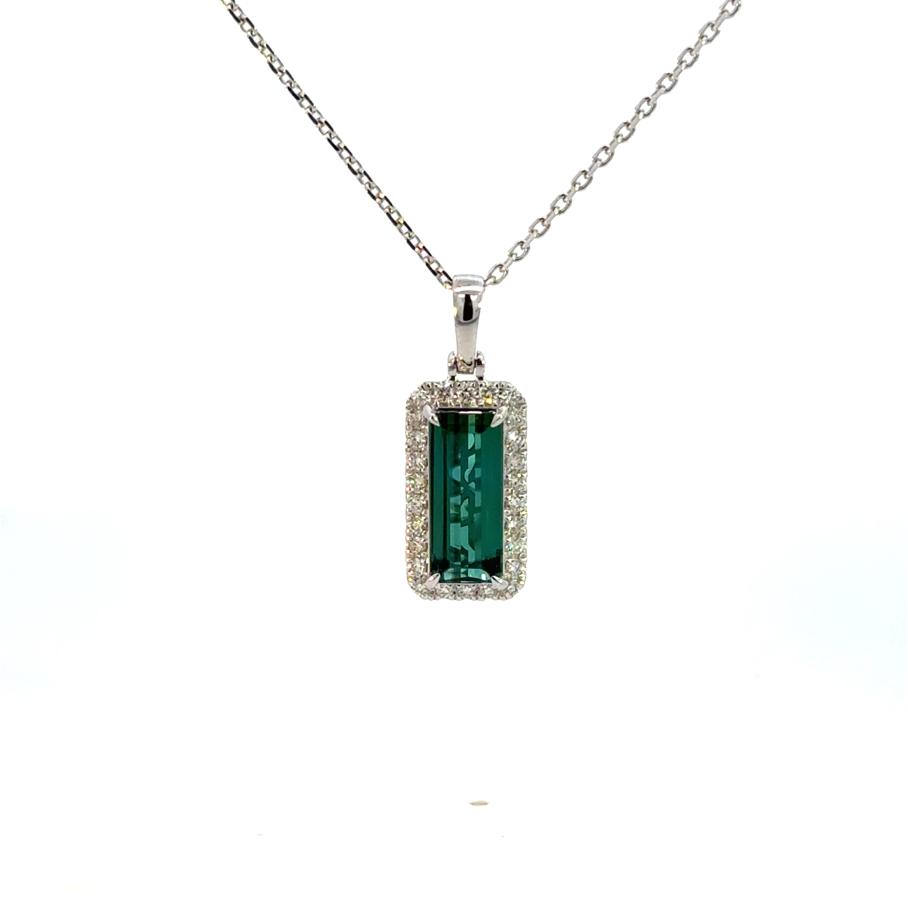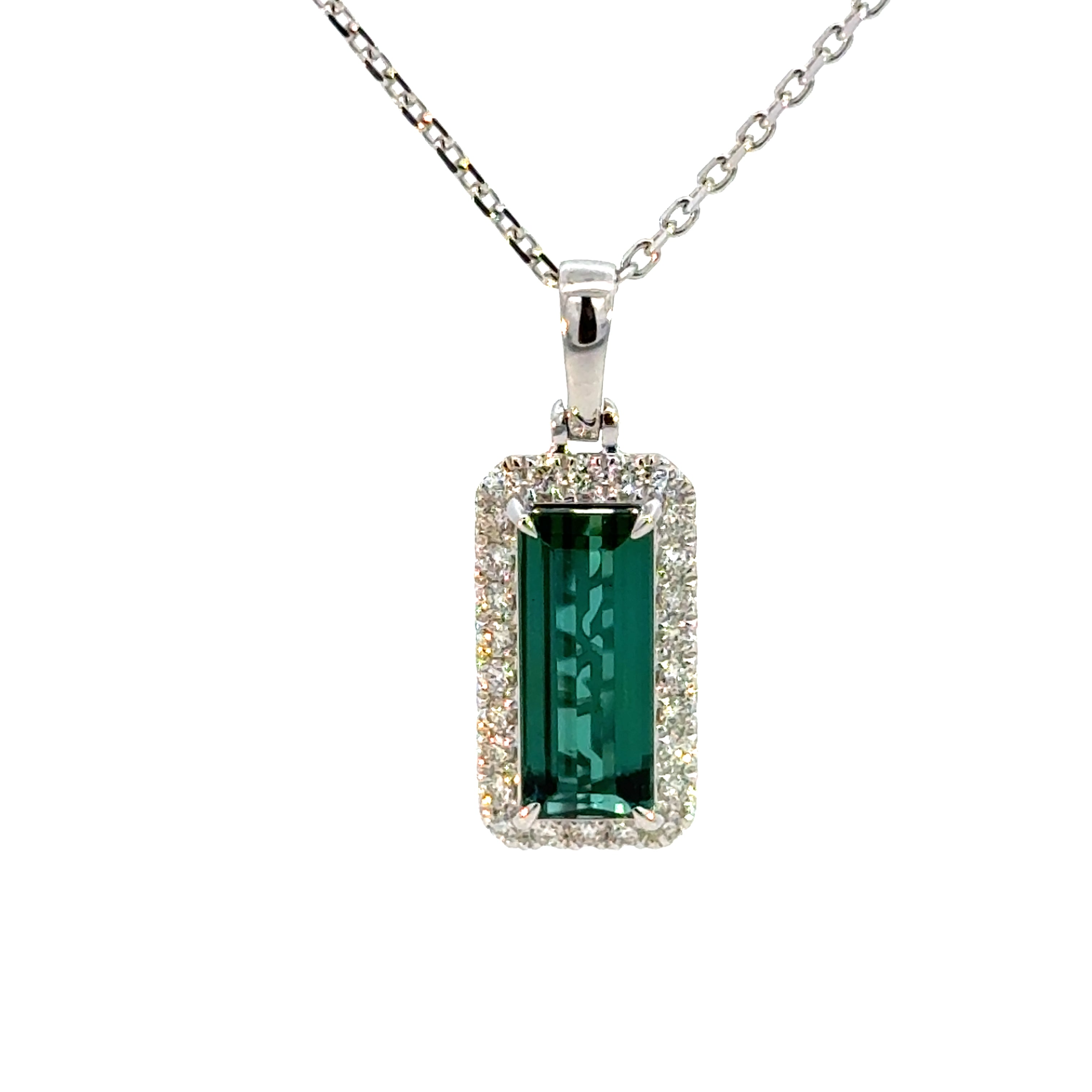 14k White Gold Green Tourmaline & Diamond Pendant Necklace