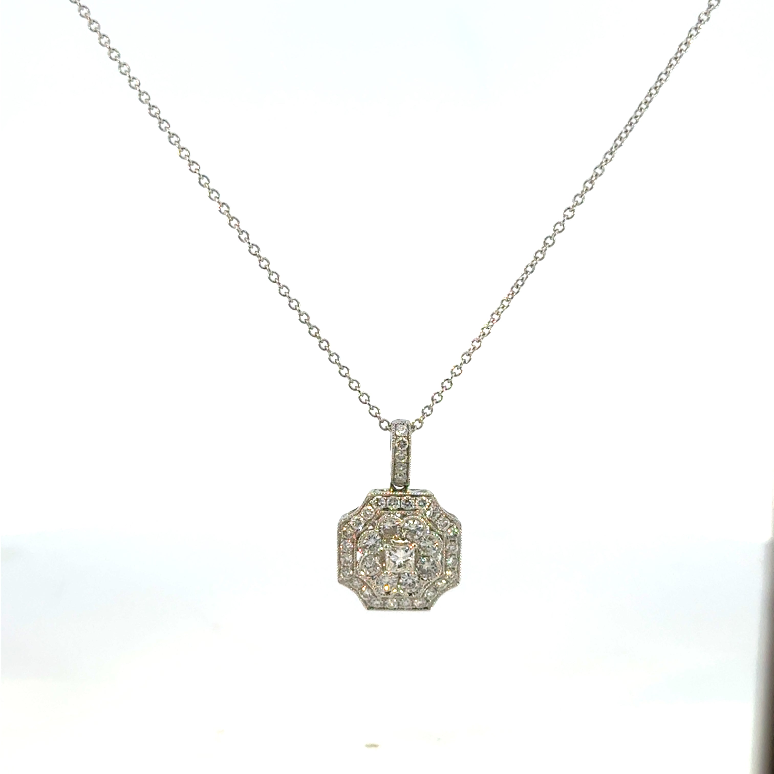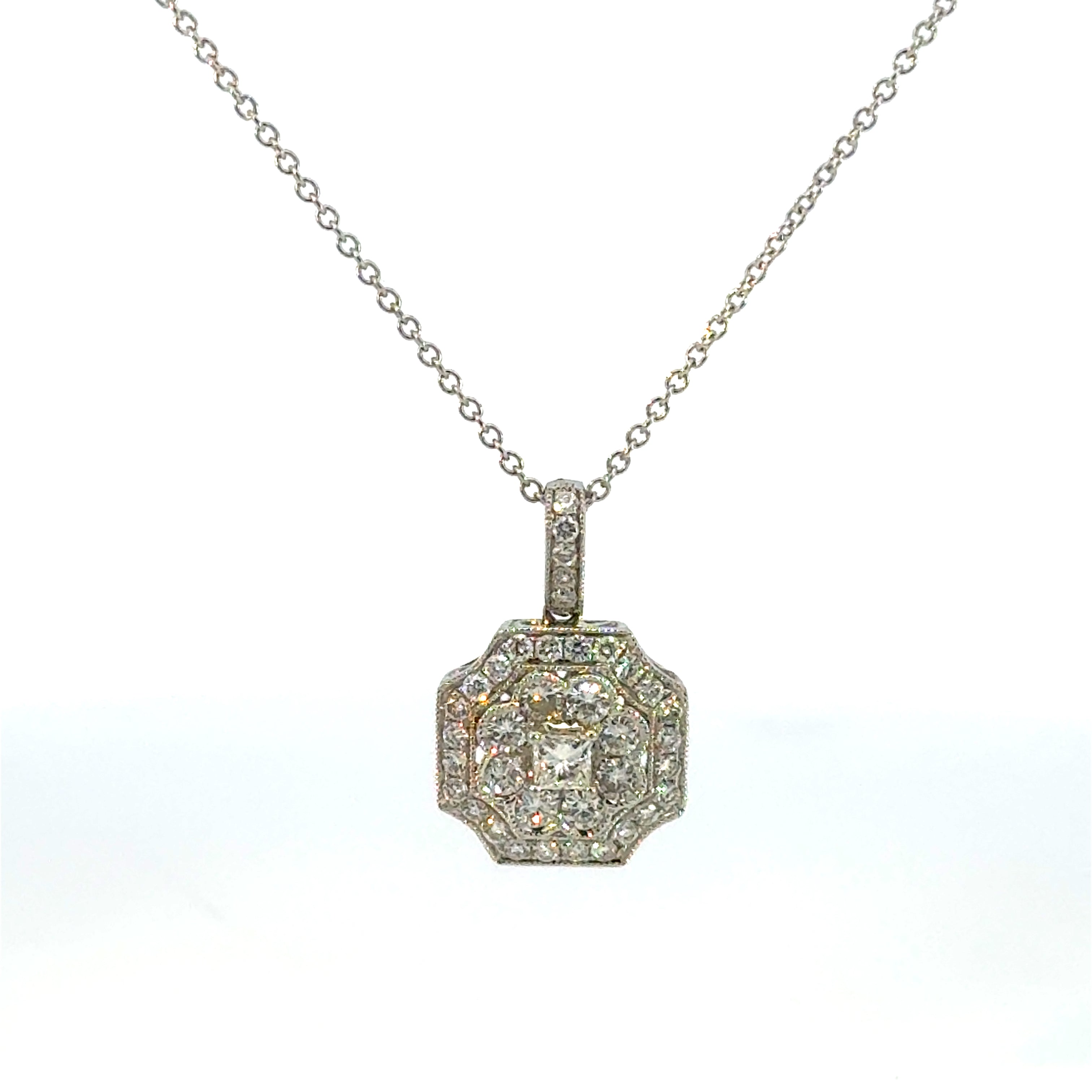 14K White Gold Diamond Halo Rectangle Pendant Necklace