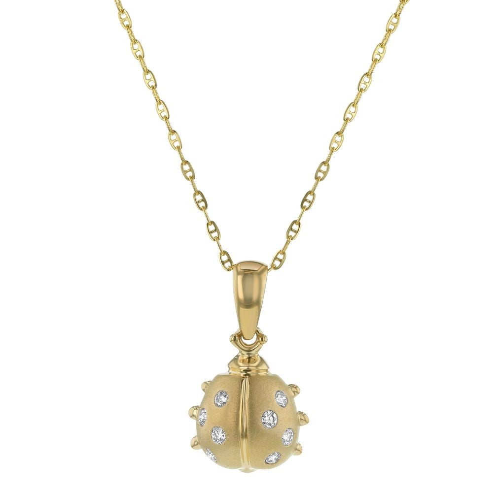 Ladybug Diamond Pendant – 14K Yellow Gold