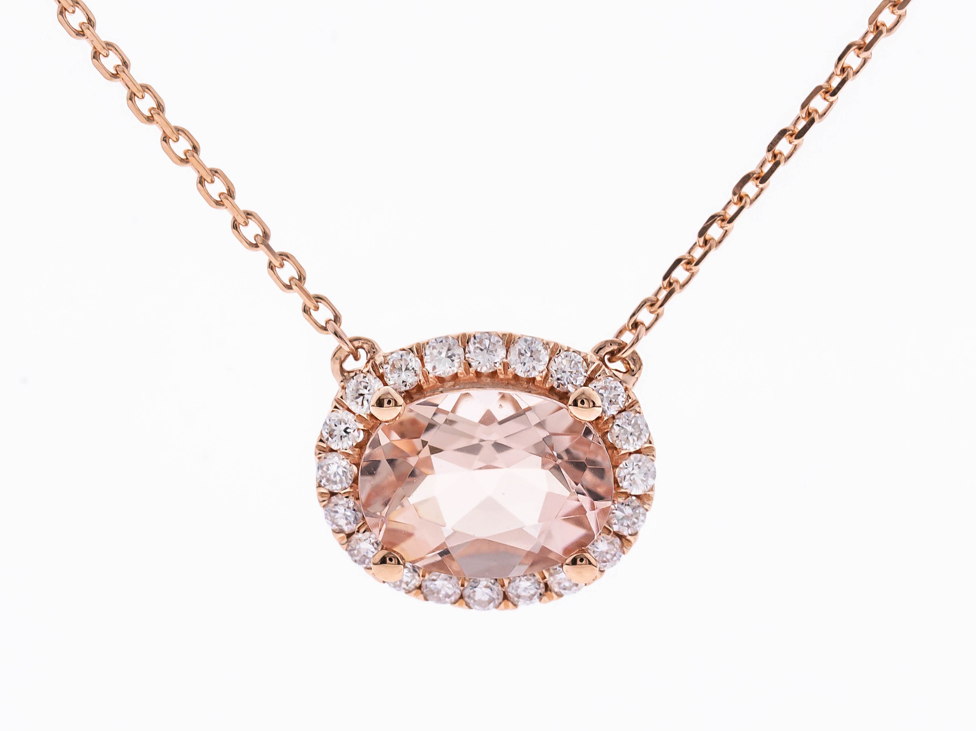 14K Rose Gold Morganite & Diamond Halo Necklace
