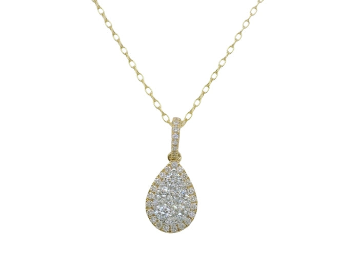 18K Yellow Gold Diamond Teardrop Halo Pendant