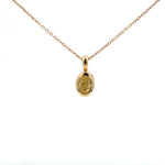 Classic and refined, this petite oval pendant features a softly textured center framed by high-polished 14K yellow gold. Its minimalist design adds a subtle hint of warmth and shine — perfect for layering or wearing as a signature everyday piece.