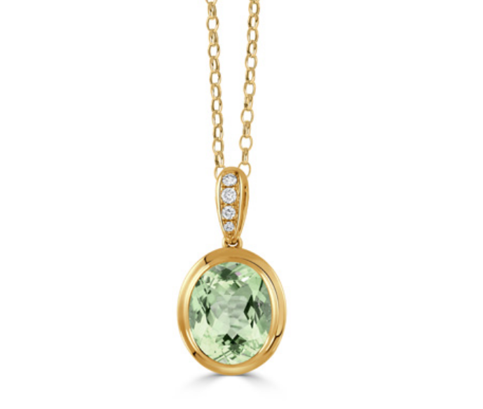 18K Yellow Gold Diamond Pendant with Green Amethyst