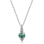 14K White Gold Green Emerald & Diamond Pendant Necklace