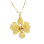 Ethereal and refined, this diamond orchid pendant showcases nature’s artistry in precious form. Handcrafted in 14K yellow gold, the lifelike petals feature a soft matte finish, accented by shimmering diamonds for a touch of brilliance.