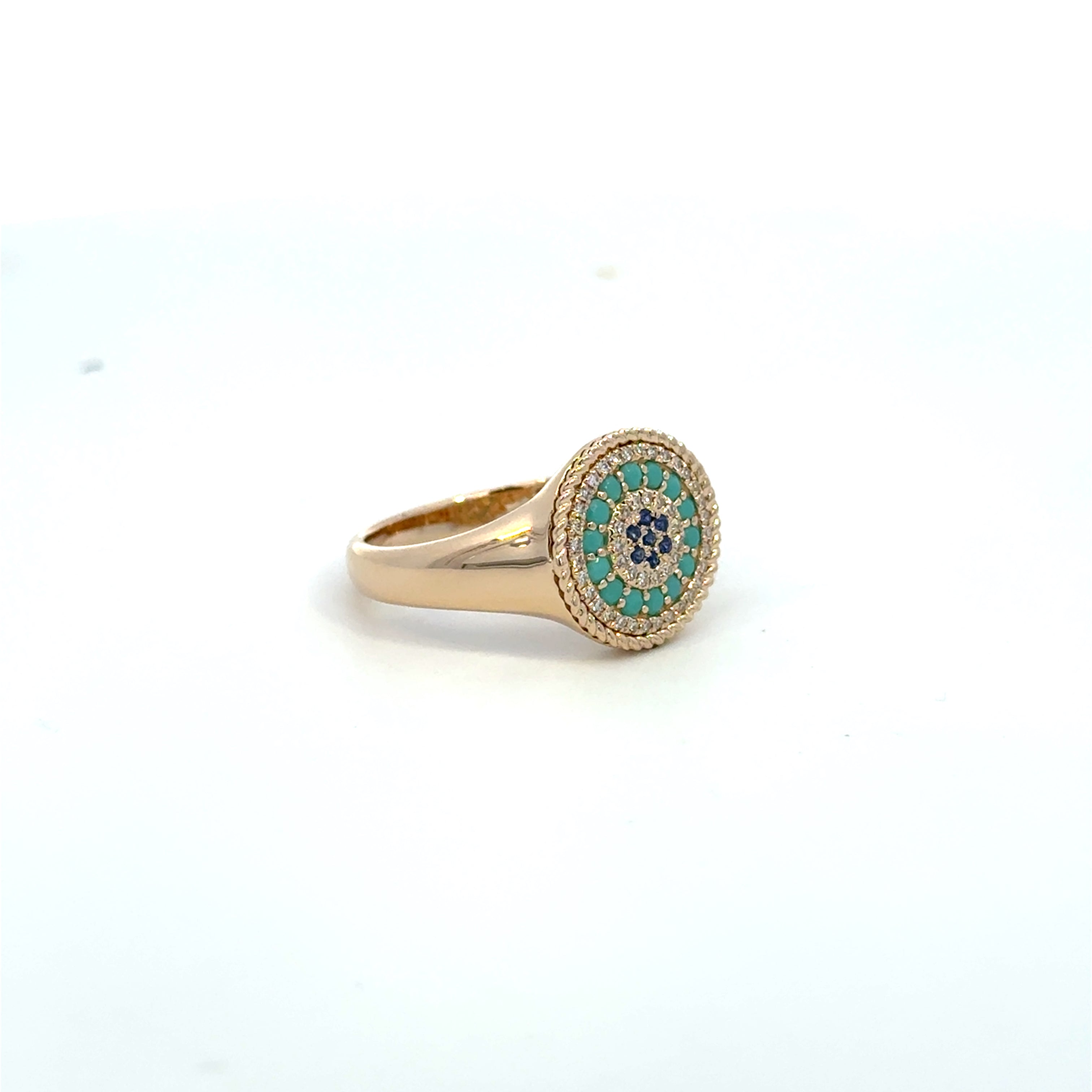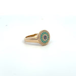 14K Yellow Gold Turquoise & Sapphire Mosaic Ring