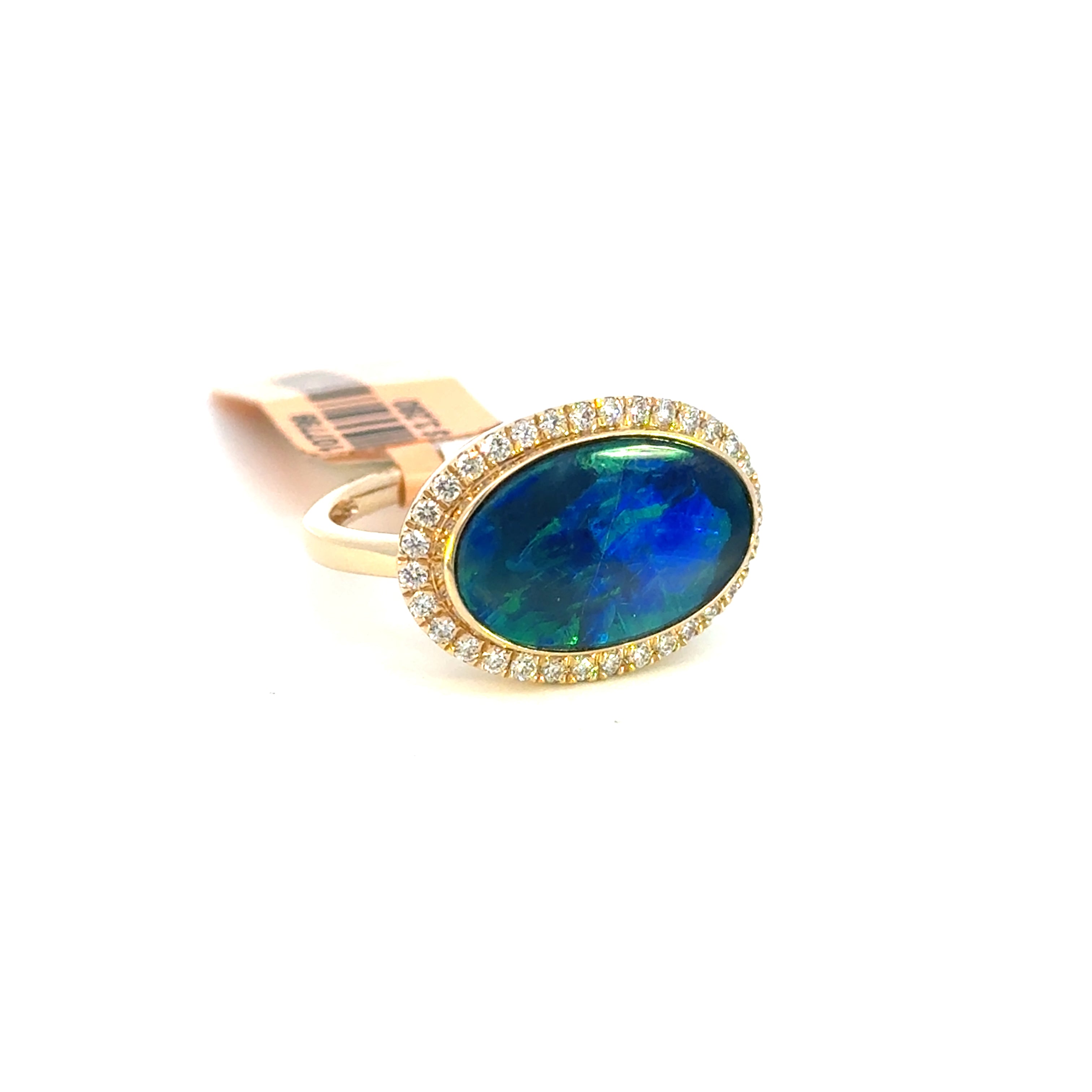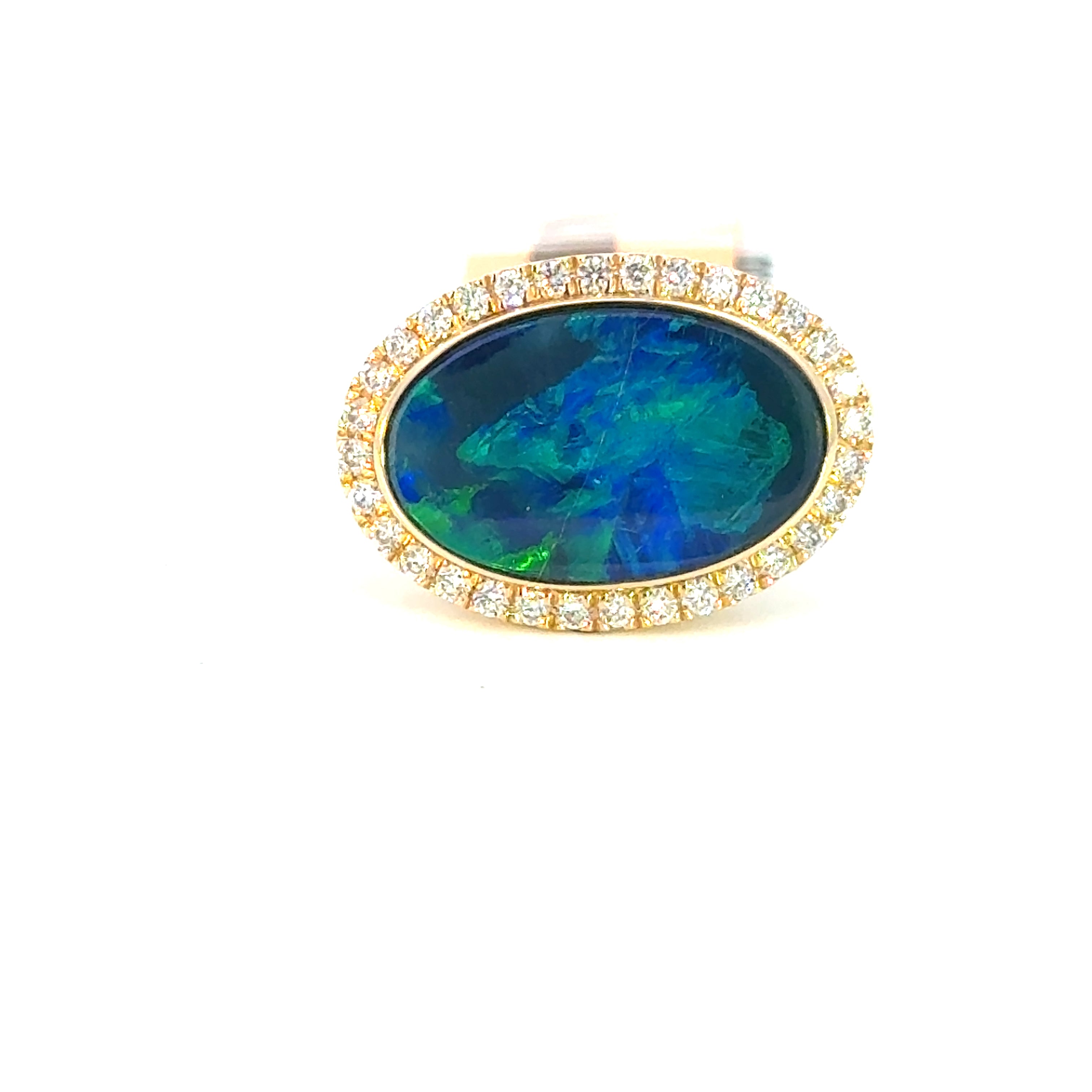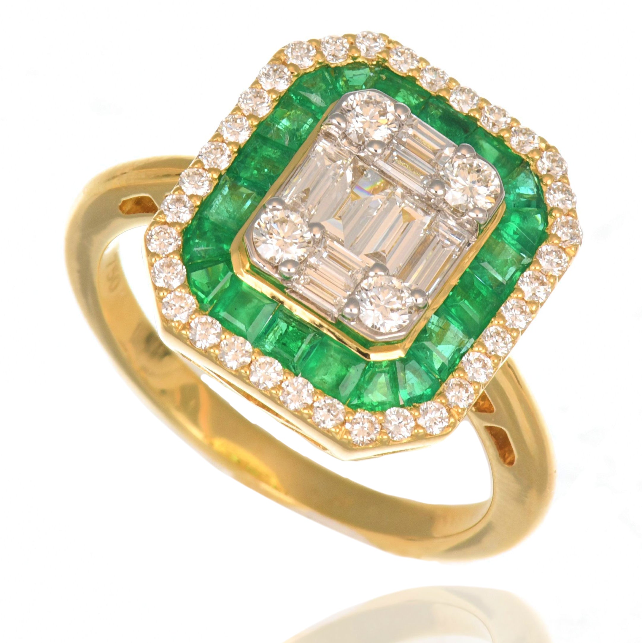 18K Yellow Gold Emerald & Diamond Halo Ring