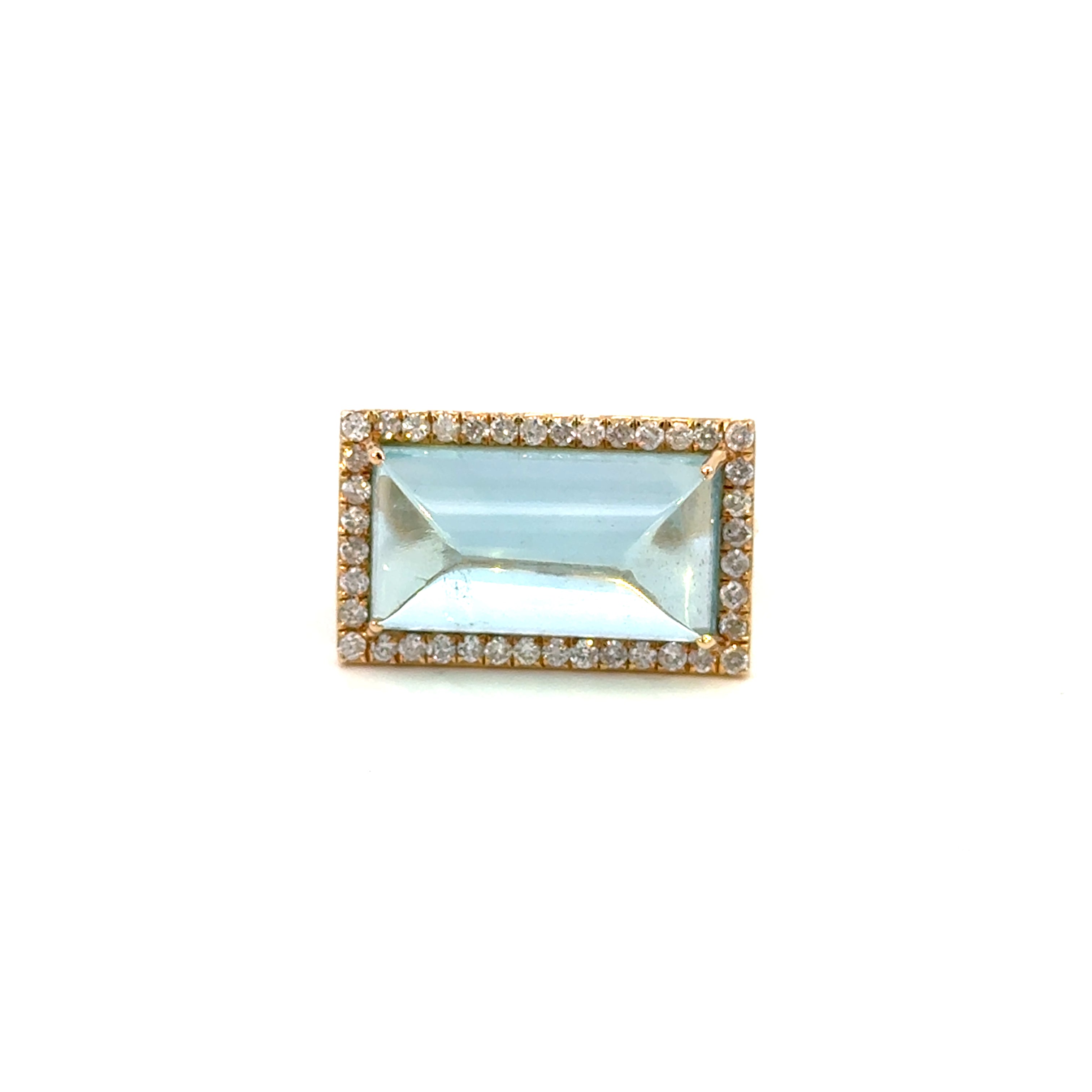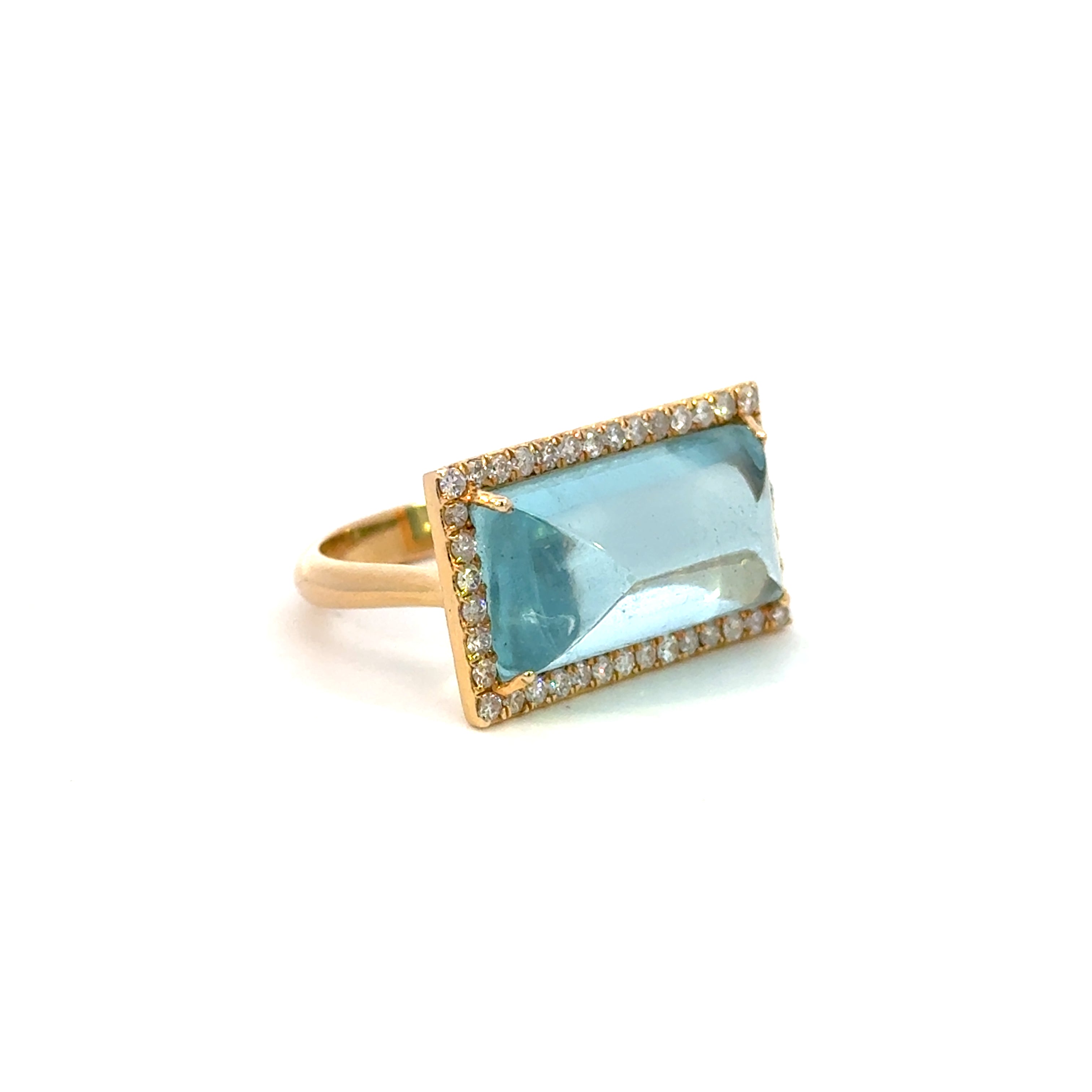 14K Yellow Gold Aquamarine Emerald-Cut Halo Ring