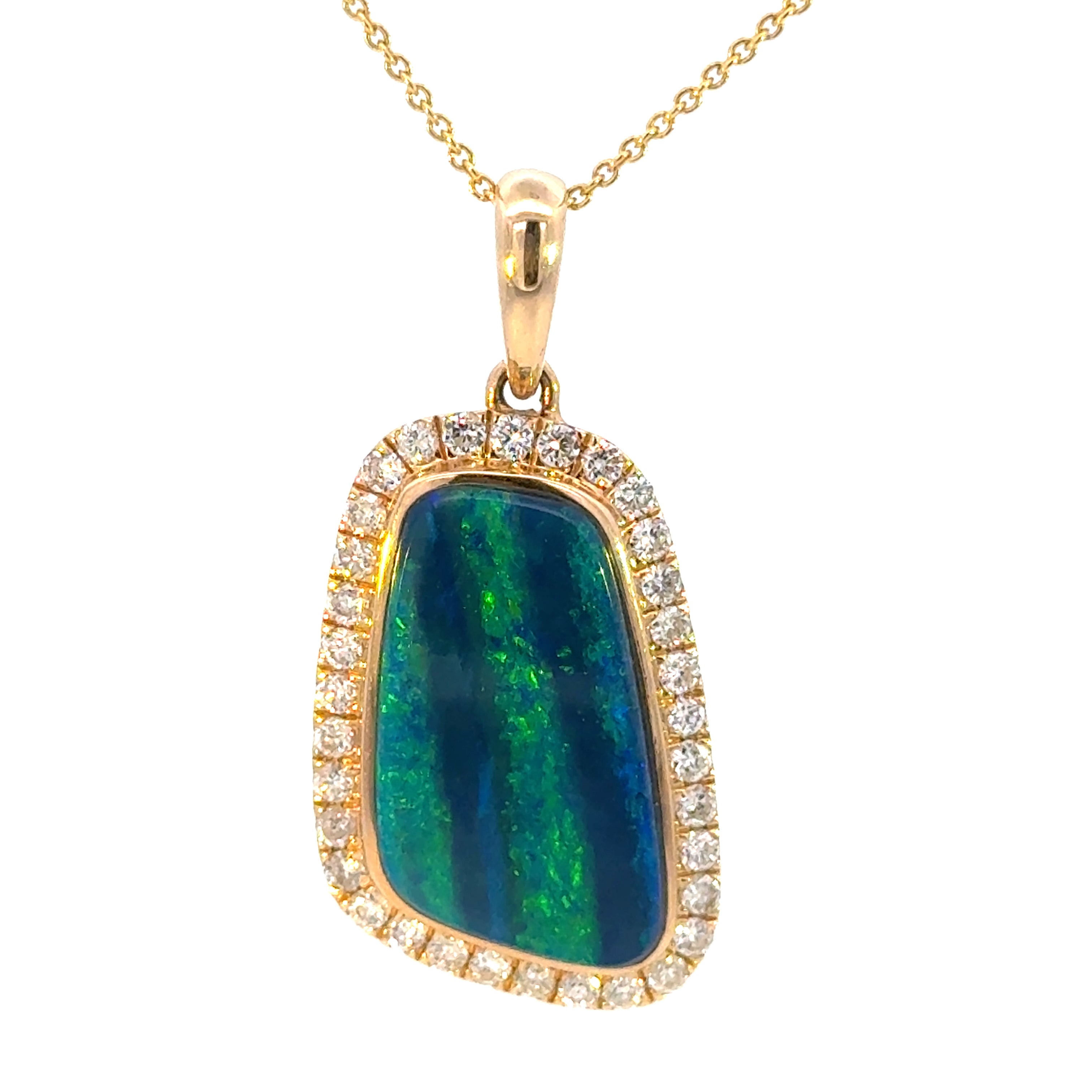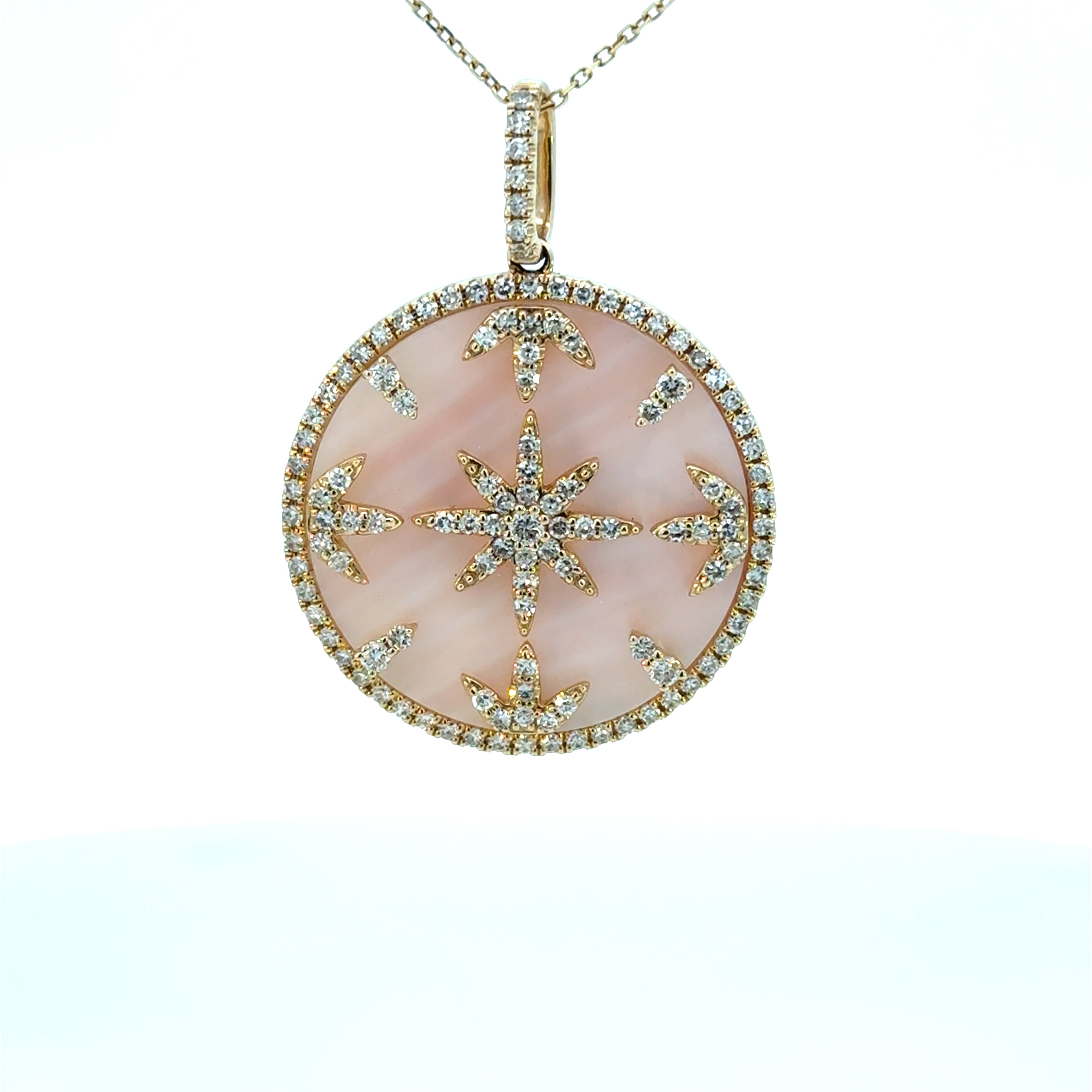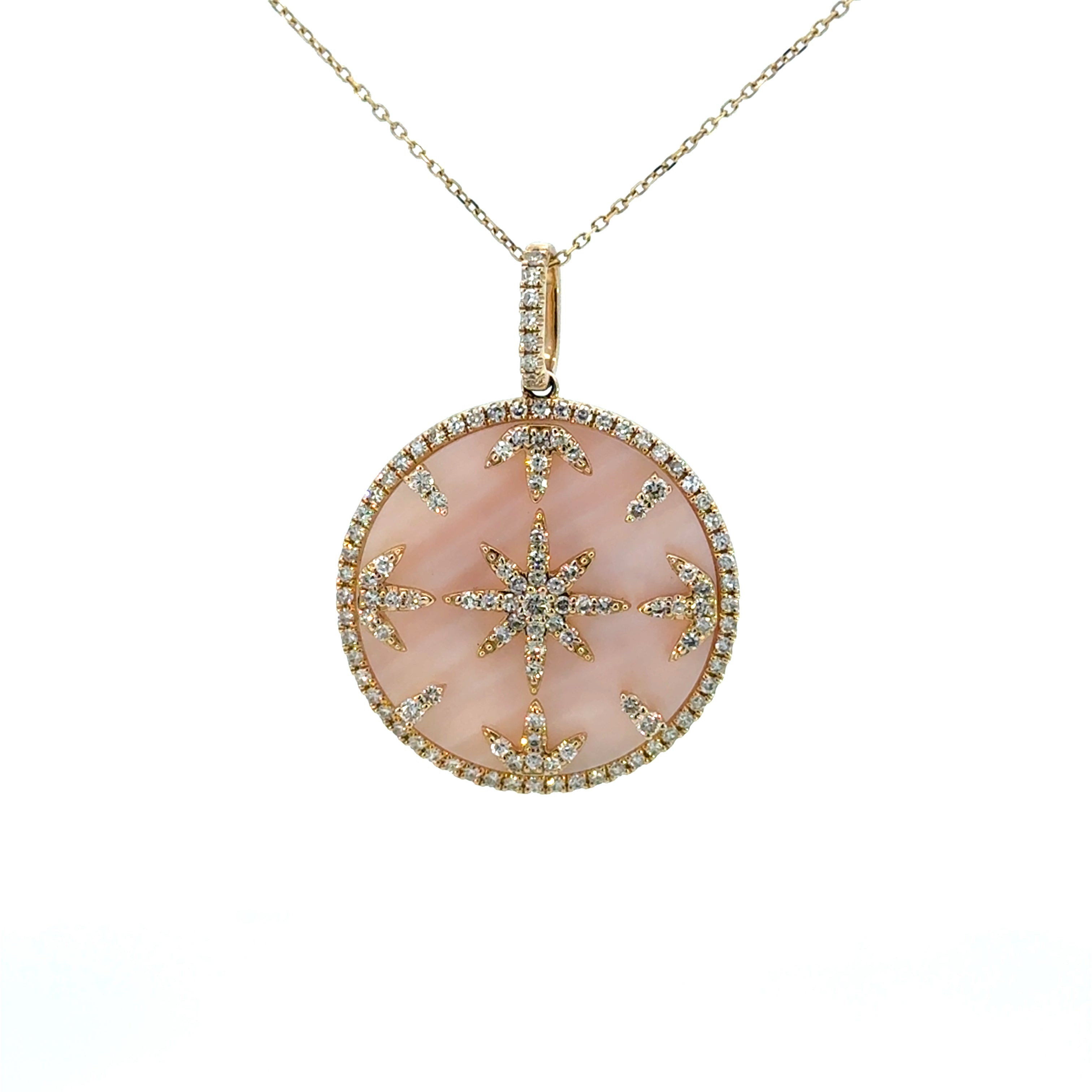 14K Yellow Gold Mother-of-Pearl Diamond Compass Pendant