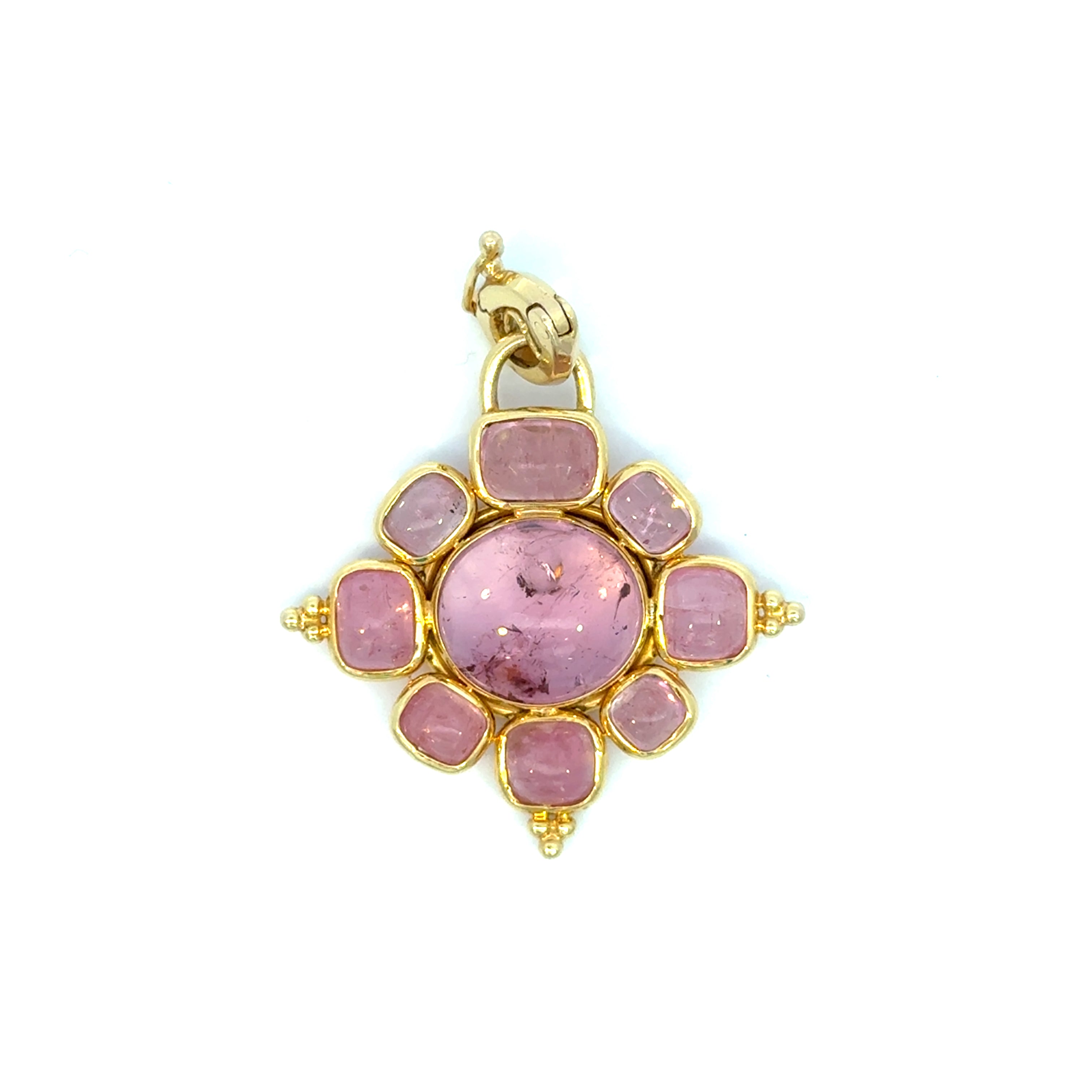 14K Yellow Gold Pink Tourmaline Medallion Pendant