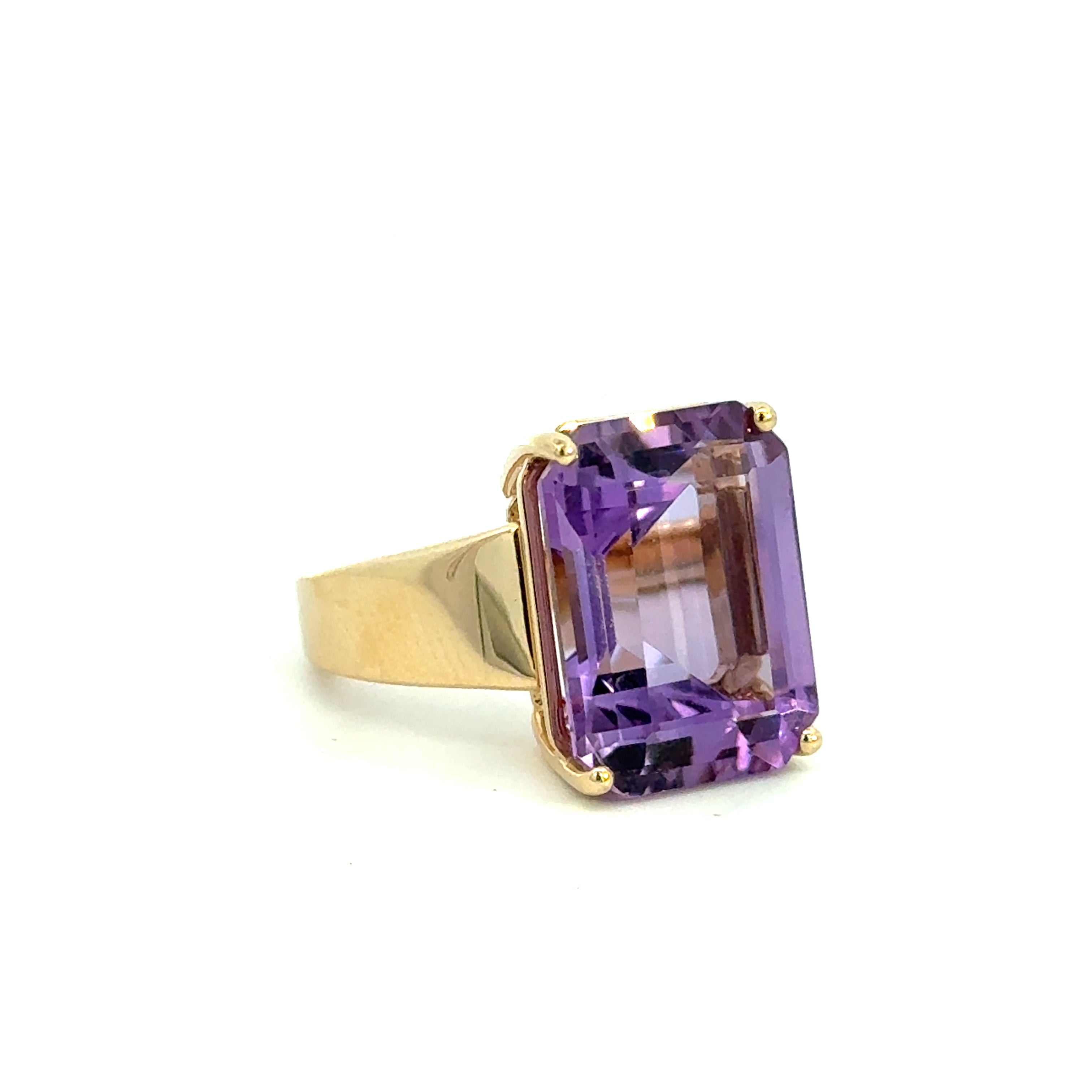 14k Yellow Gold Emerald Cut Purple Amethyst