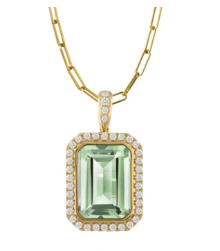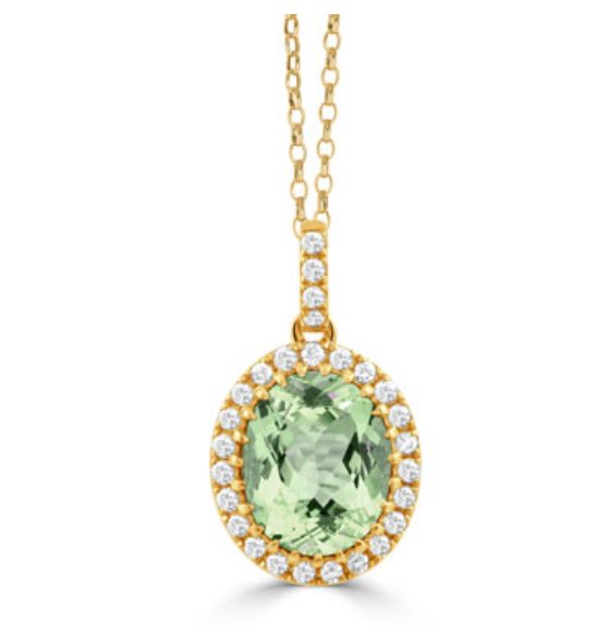 18K Yellow Gold Diamond Pendant with Mint Green Amethyst